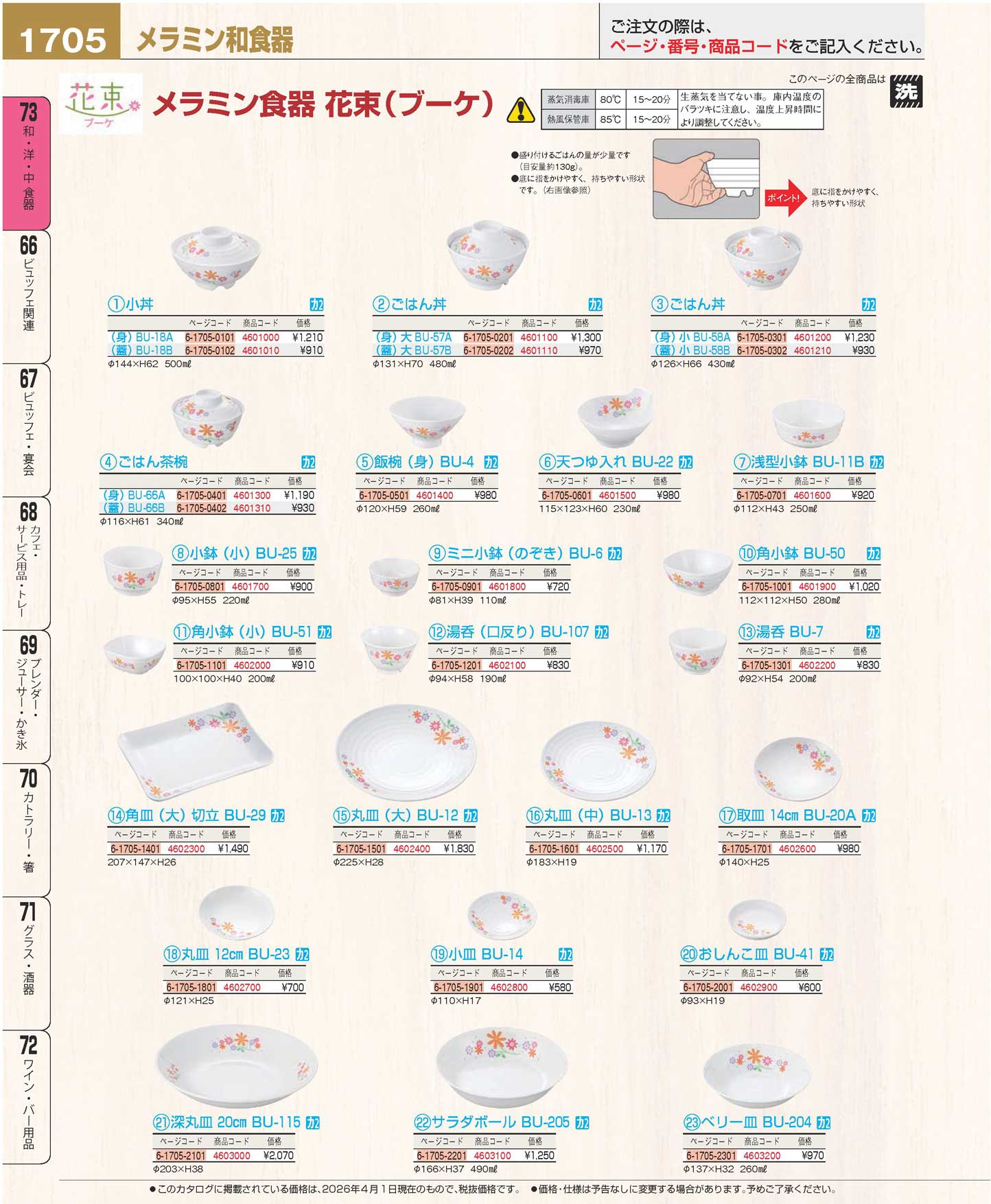 メラミン食器 花束(ブーケ)小丼(身)BU-18A(110)