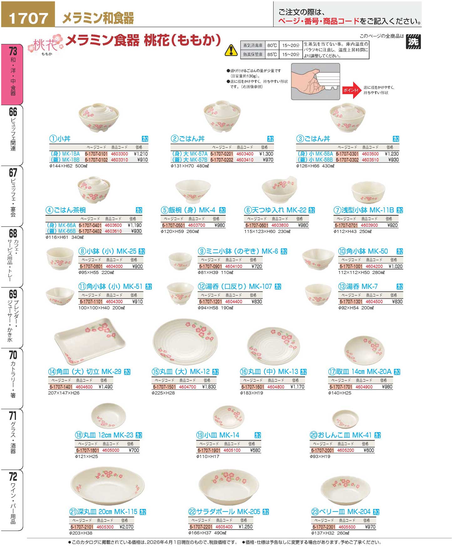 メラミン食器 桃花(ももか)ごはん丼(蓋)小 MK-58B(110)