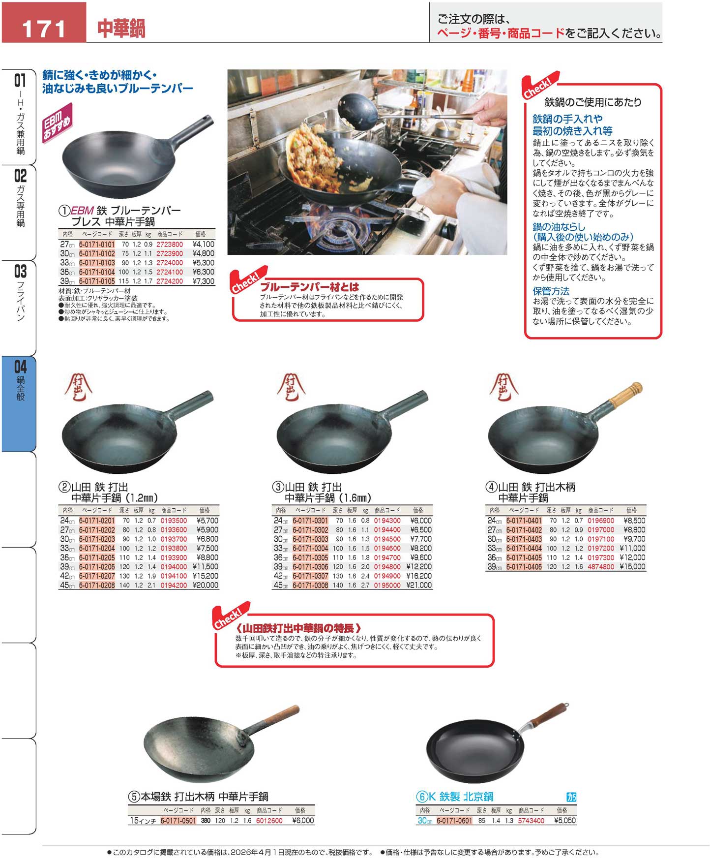 EBM 鉄ブルーテンパー プレス 中華片手鍋 30cm(90)