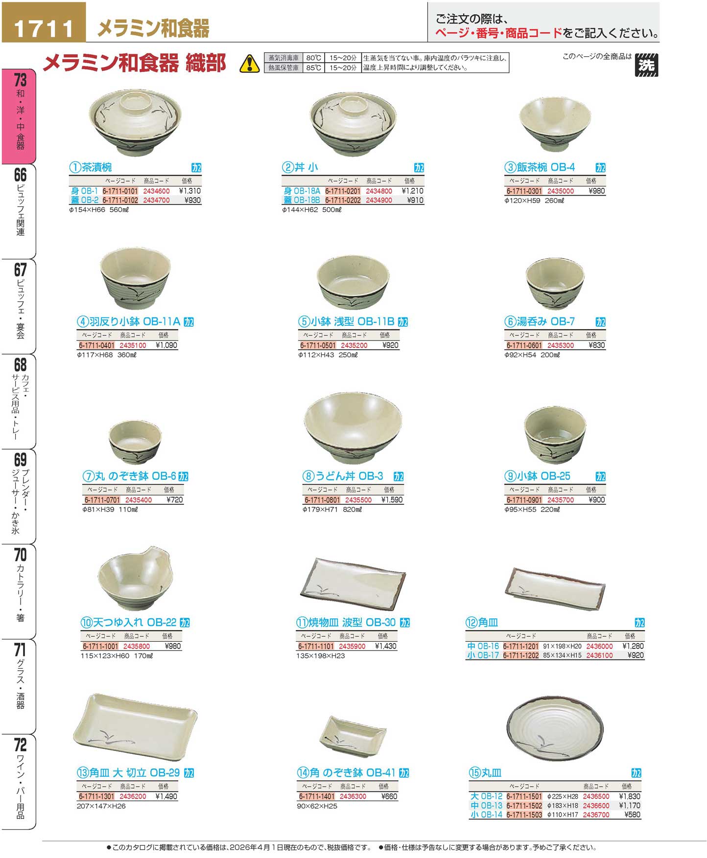 メラミン和食器 織部 茶漬椀 蓋 OB-2(110)