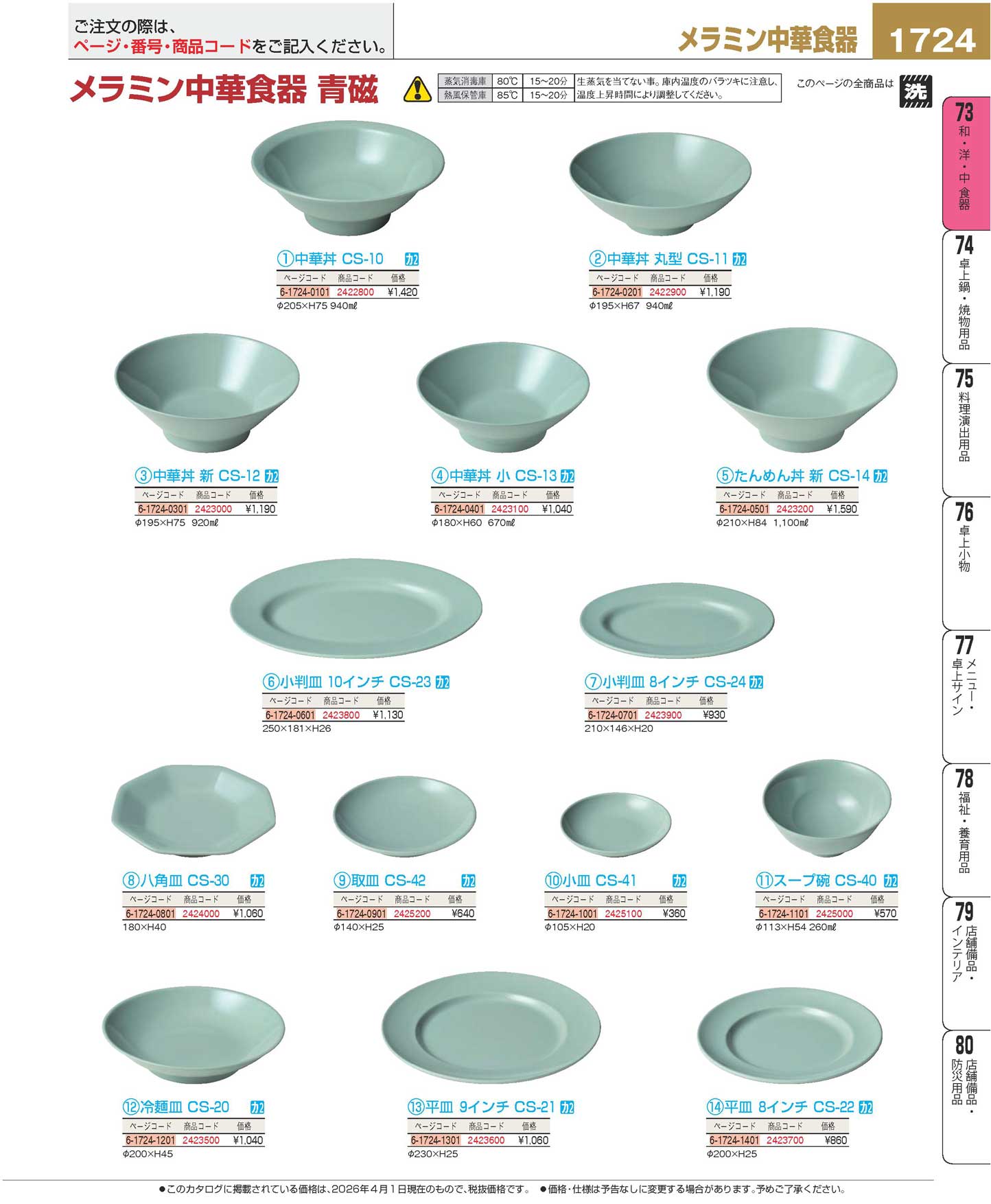 メラミン中華食器 中華丼 新 CS-12 青磁無地(110)