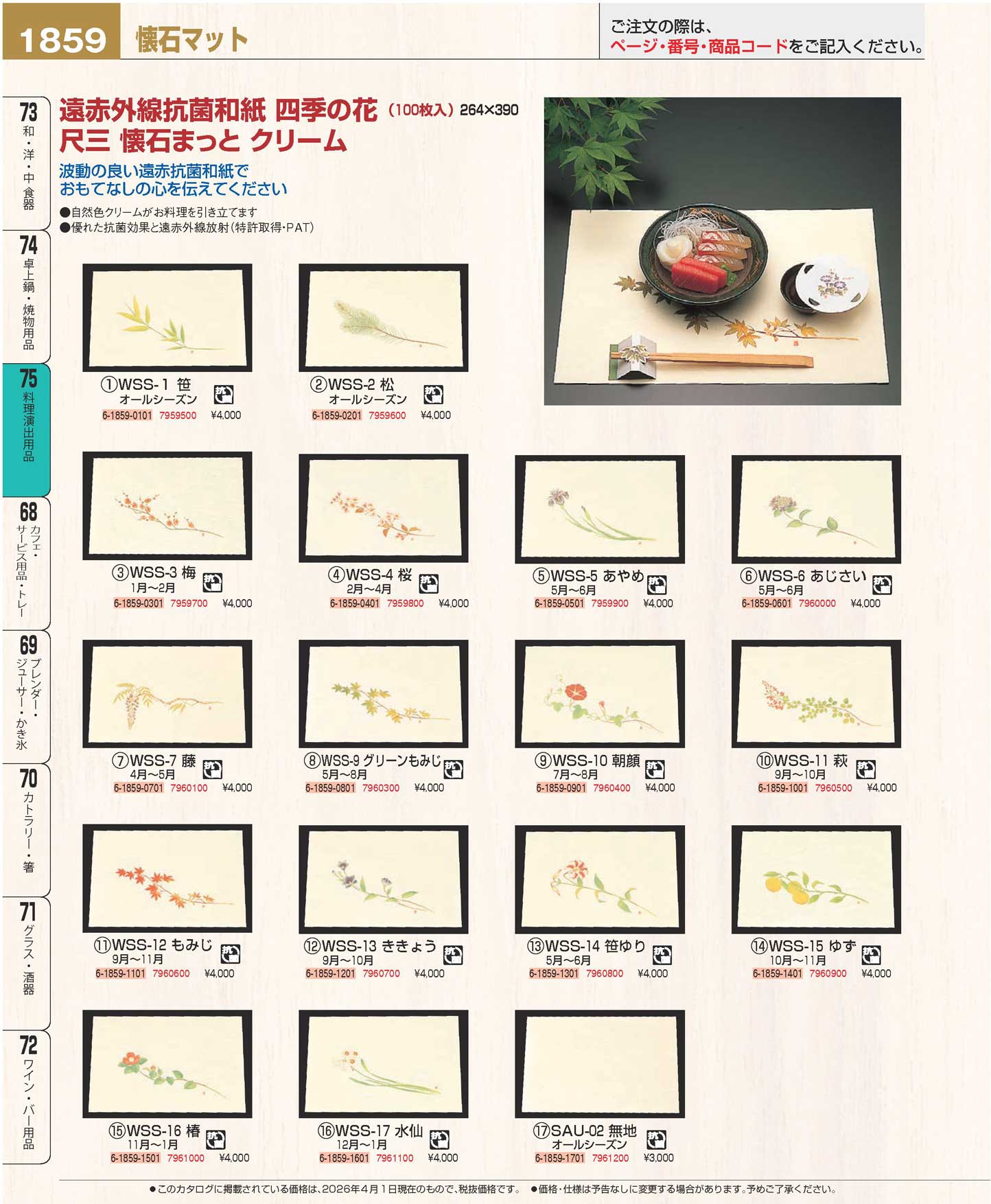 尺三 懐石まっと クリーム(100枚入)WSS-4 桜(2月から4月)(90)