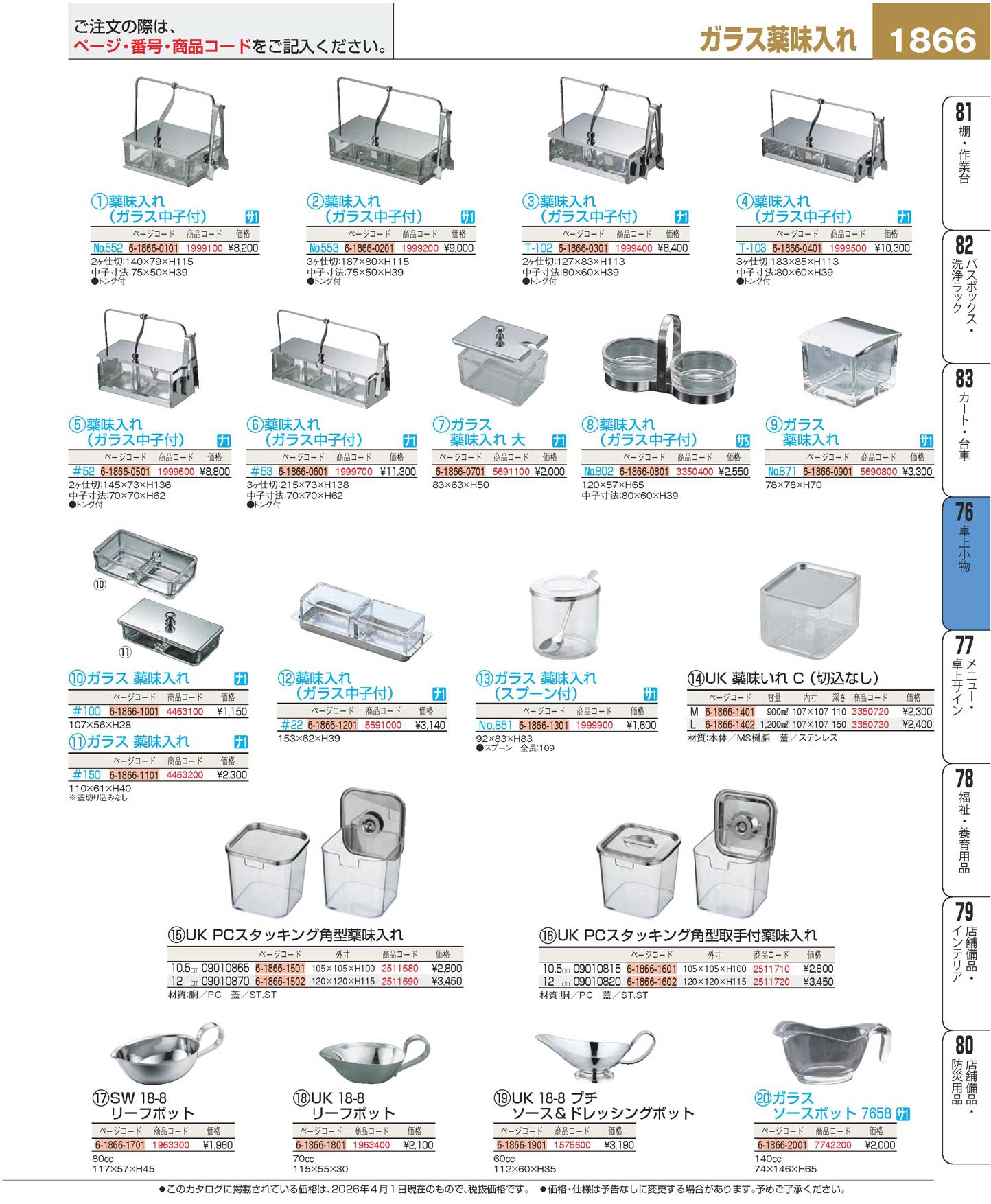 薬味入れ No.552(ガラス中子・トング付)(120)
