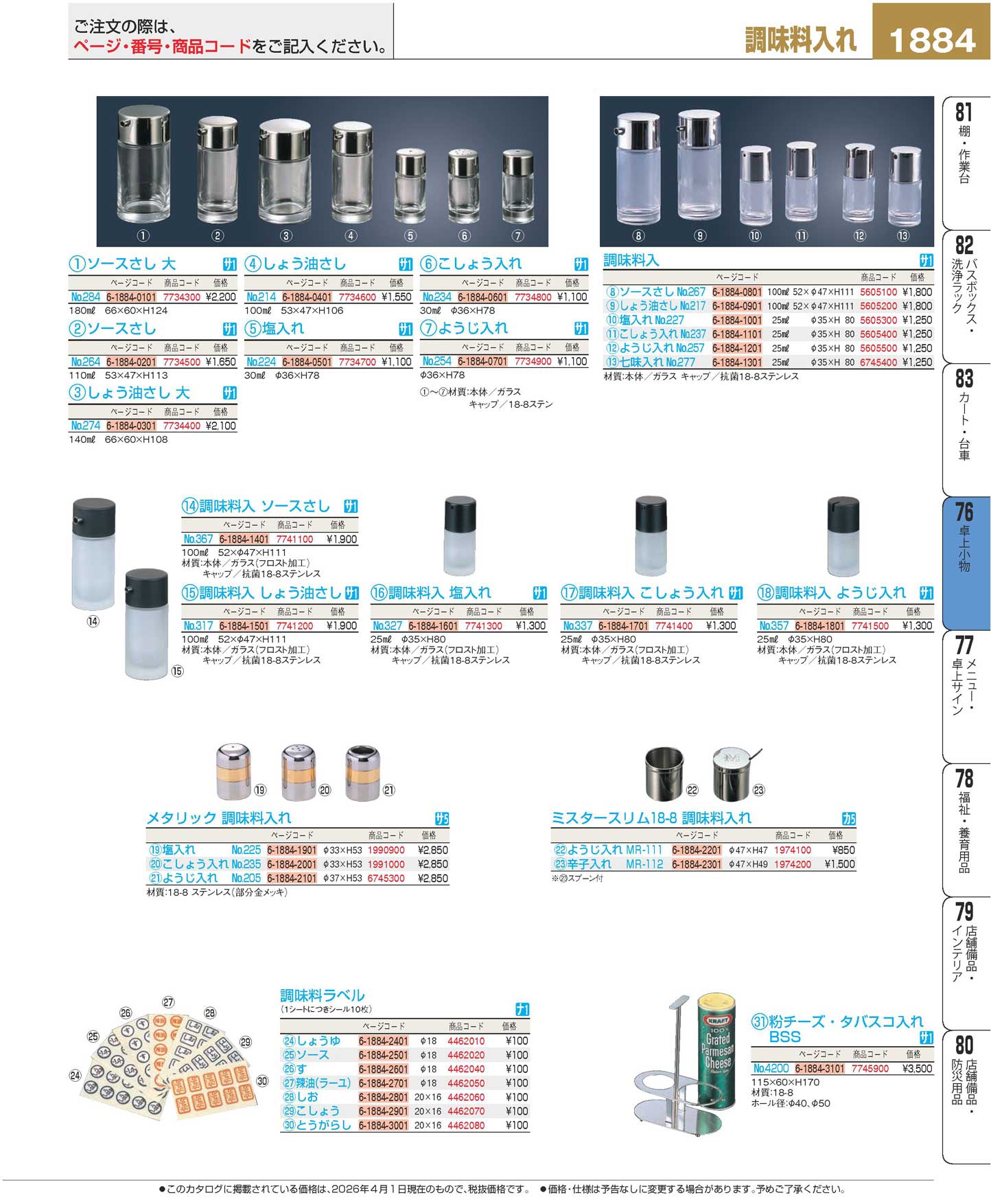 粉チーズ・タバスコ入れ No.4200BSS(120)