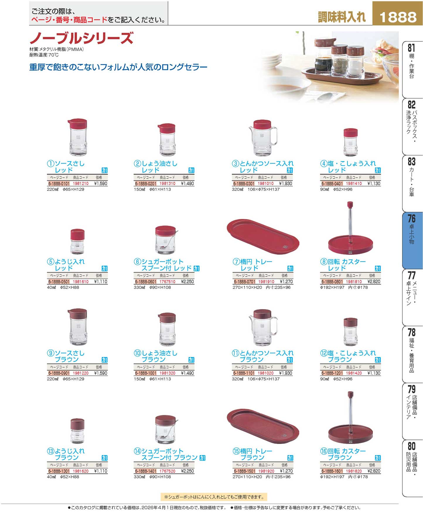 ノーブル 塩・こしょう入れ用蓋丈 レッド(110)