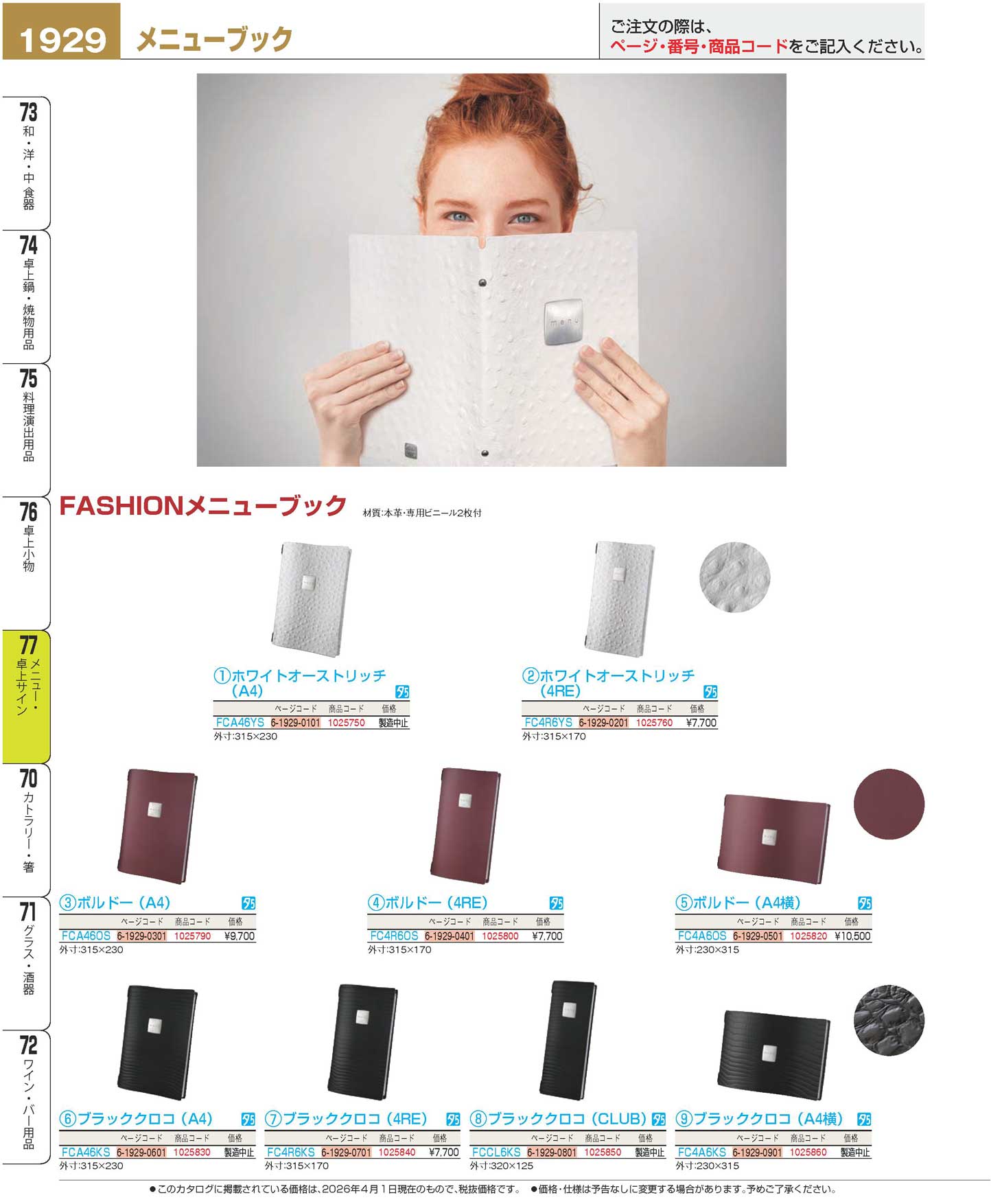 ファッション メニューブック FC4R6YS ホワイトオーストリッチ(4RE)(130)