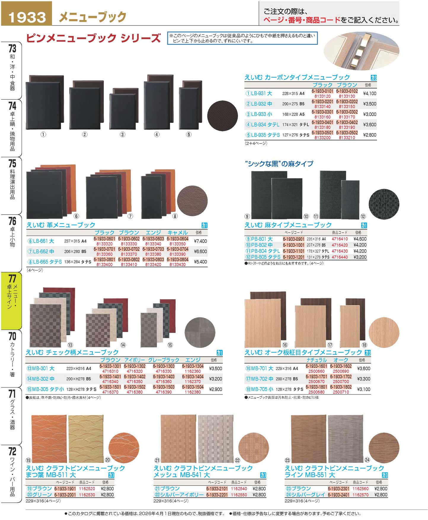 えいむ 麻タイプメニューブック PB-804 タテL(110)