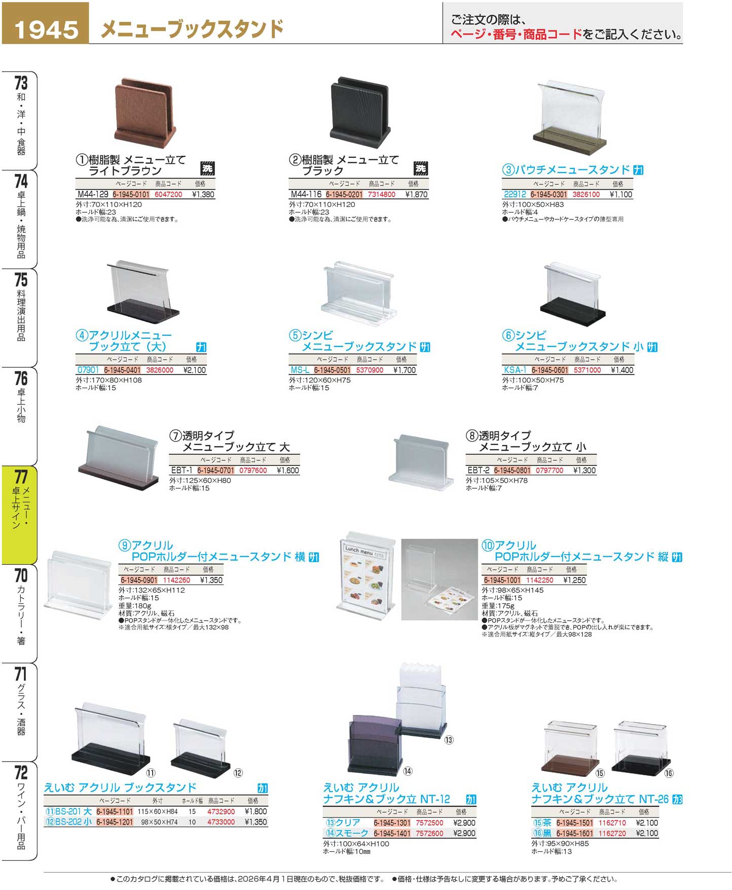 シンビ メニューブックスタンド KSA-1 小 100×50×H75(120)