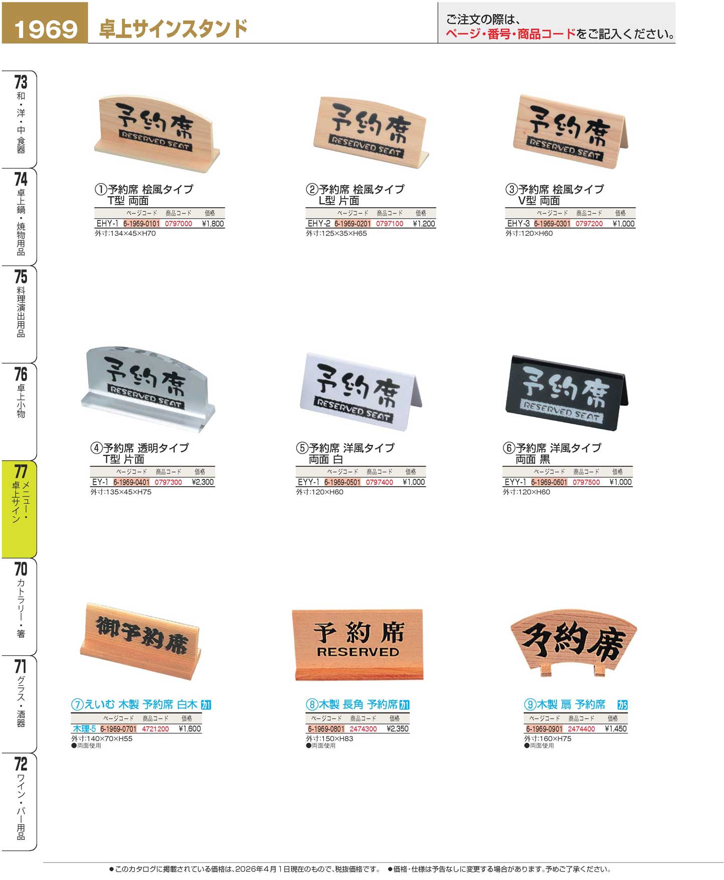 予約席 桧風タイプ T型(両面)EHY-1(90)(商品番号0797000)
