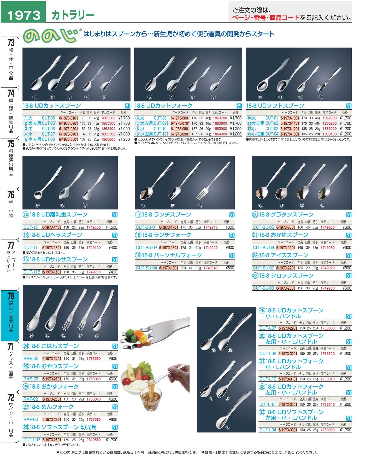 ののじ 18-8 UDカットフォーク小 左用 CUT-101(130)