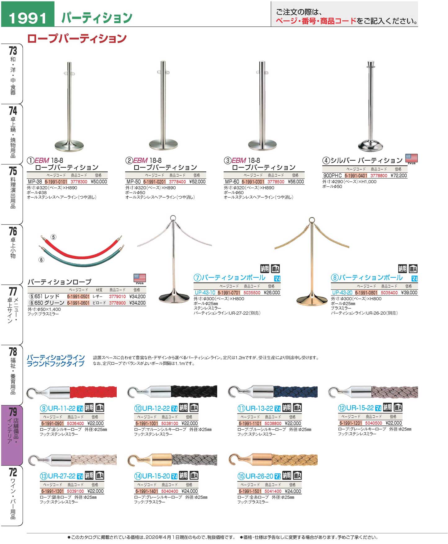 EBM 18-8 ロープパーティション MP-60(90)