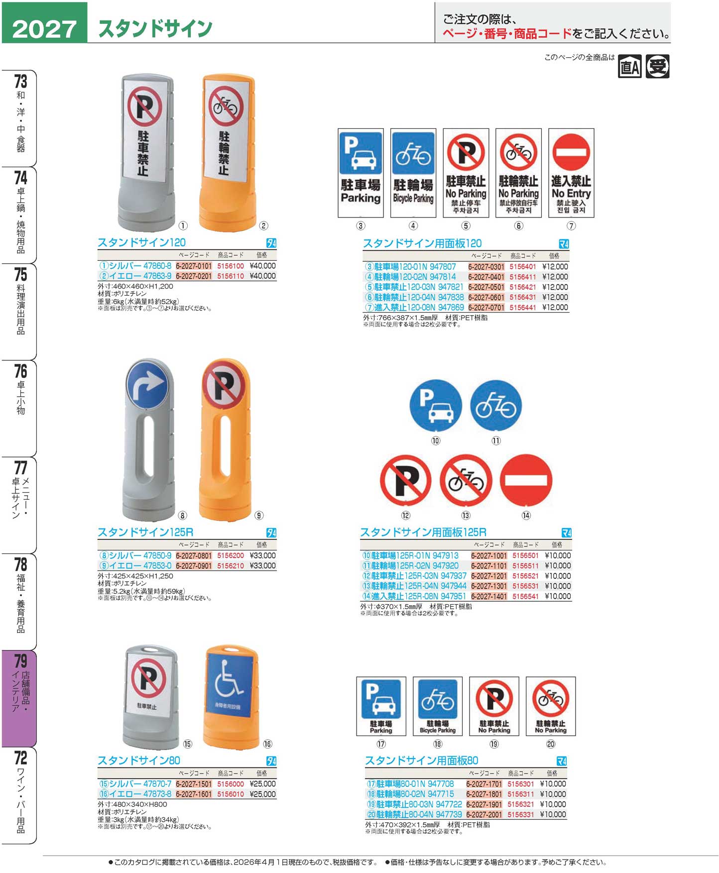 スタンドサイン用面板80 駐輪禁止80-04N 947739(160)(商品番号5156331)