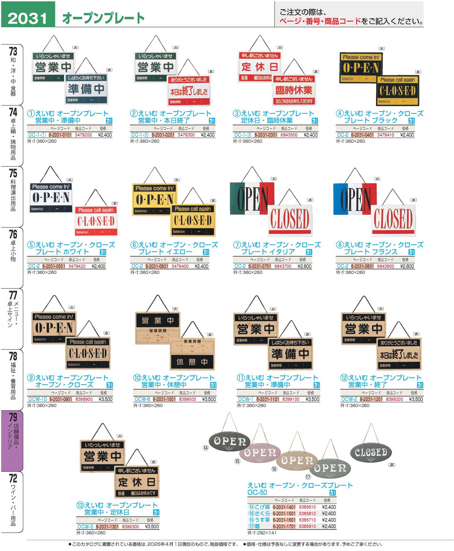 えいむ オープンプレート 定休日・臨時休業 OC-1-B(110)