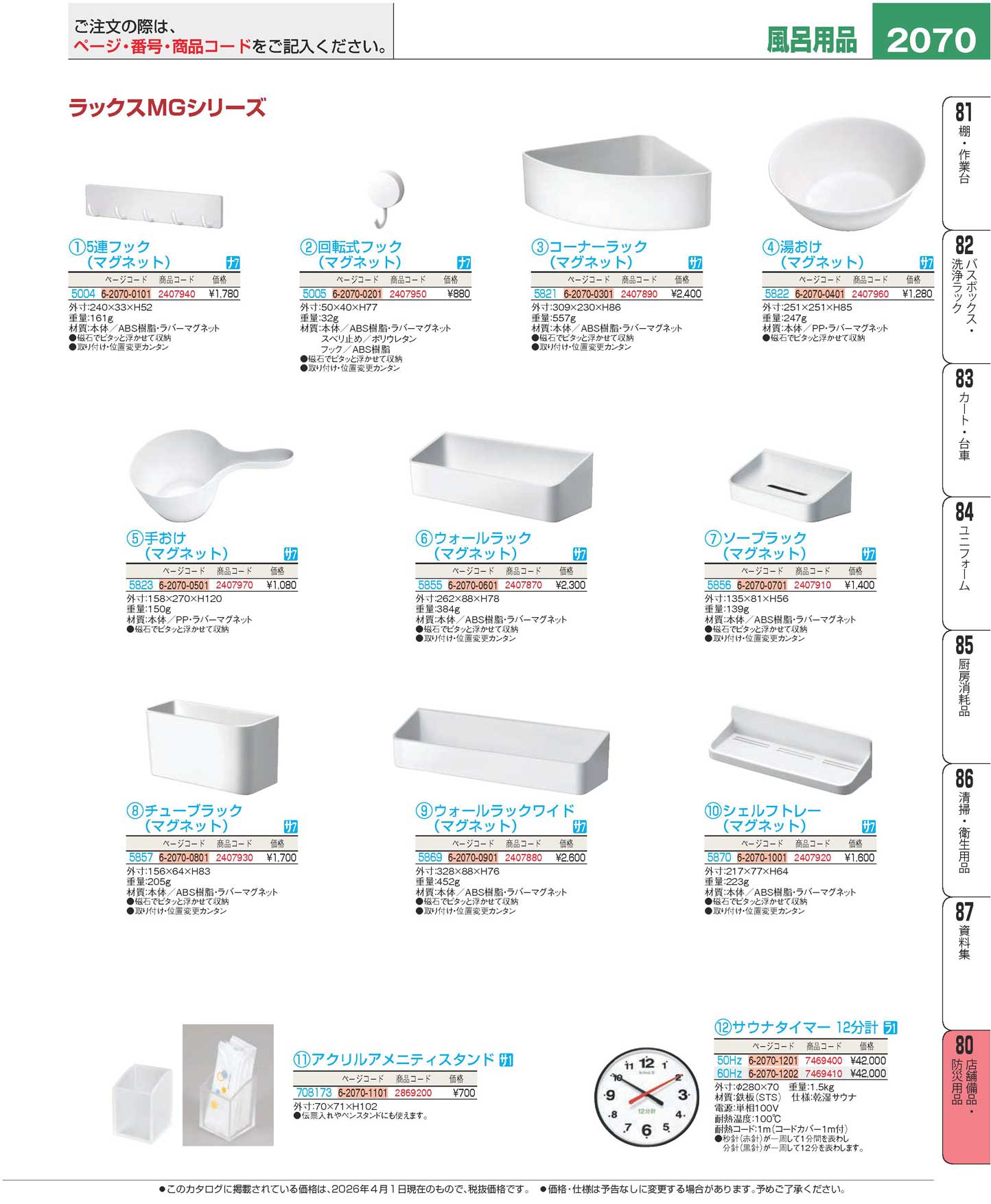 ラックスMG シェルフトレー(マグネット)5870(120)