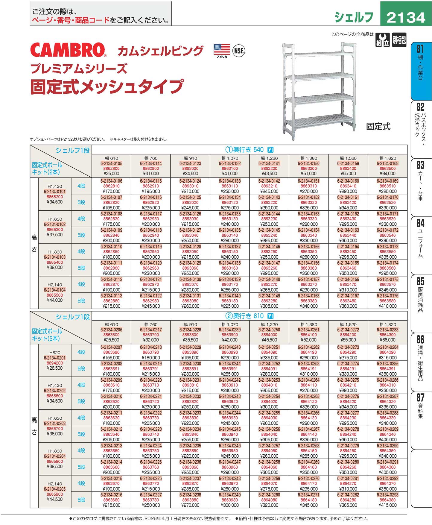 カムシェルフ固定 540×760×H2140 4段メッシュ CPU213084V4(480)(100)