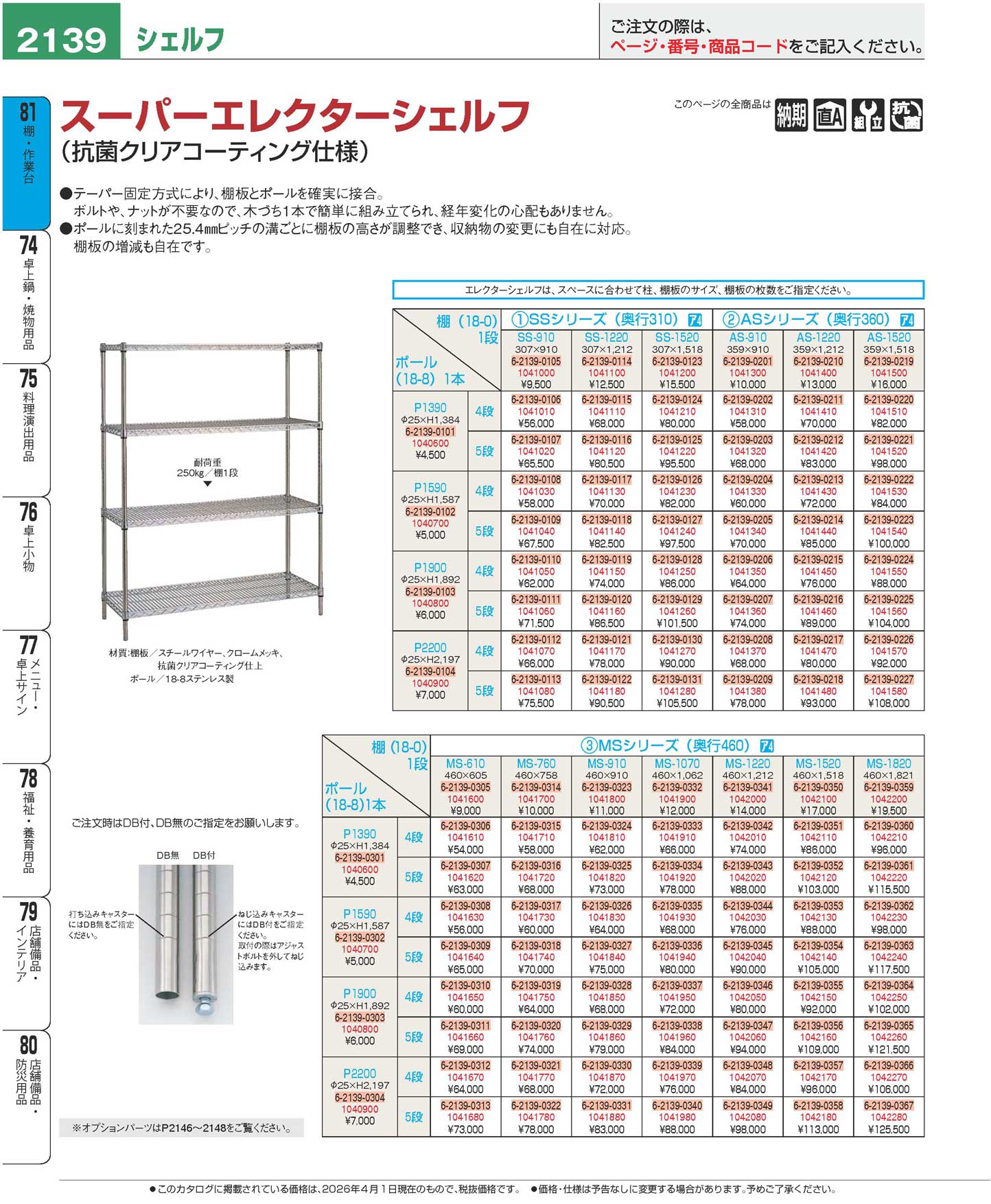 スーパーエレクターシェルフ 4段 P1900×MS760(100)