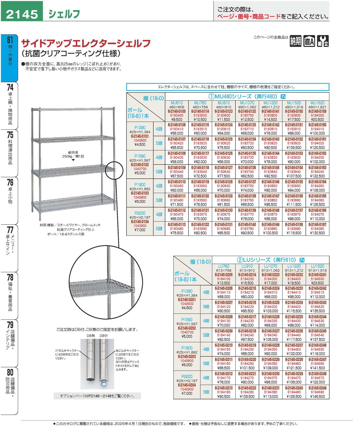 サイドアップエレクターシェルフ4段 P2200×LU760(100)