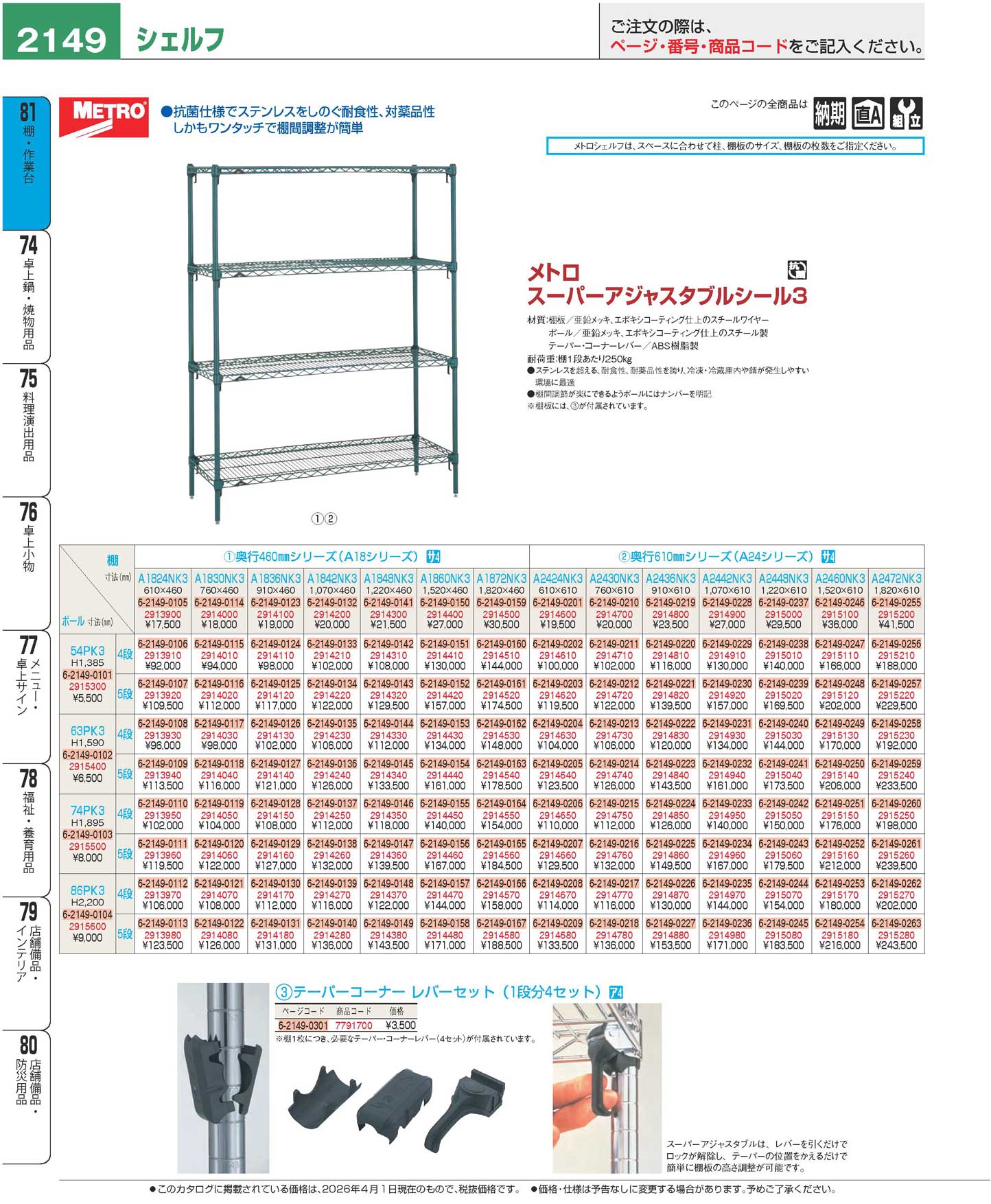 メトロ スーパーアジャスタブルシール3 シェルフ 4段 A2460NK3・86PK3(120)