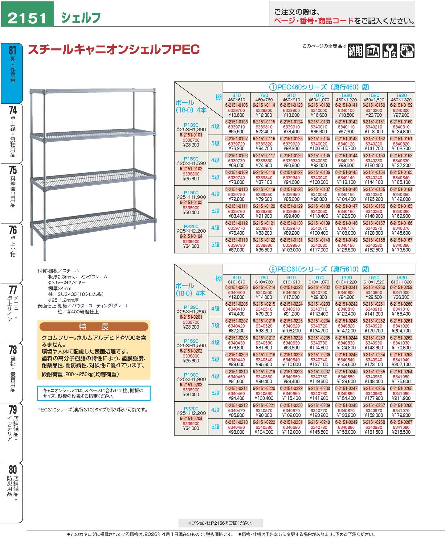 キャニオン シェルフ PEC460 5段 P1590×1820(120)