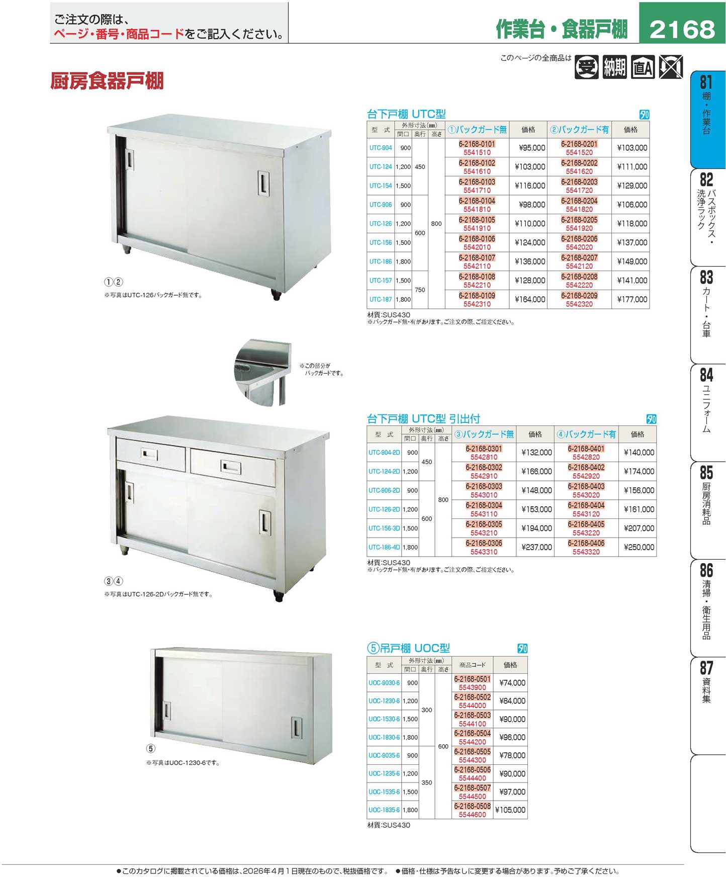 台下戸棚 UTC-187 バックガード無(130)