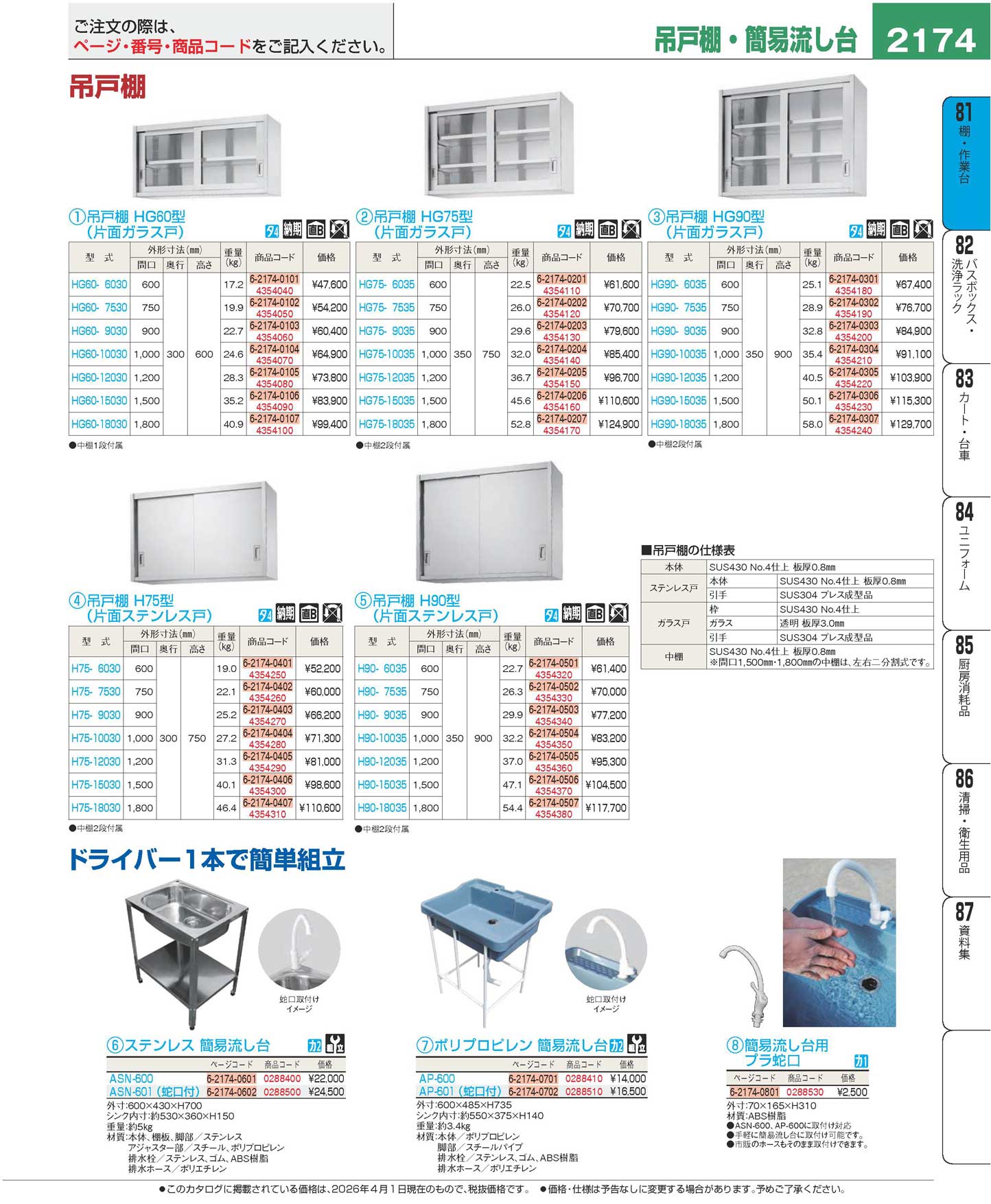 吊戸棚 HG90型(片面ガラス戸)HG90-18035(130)(商品番号4354240)