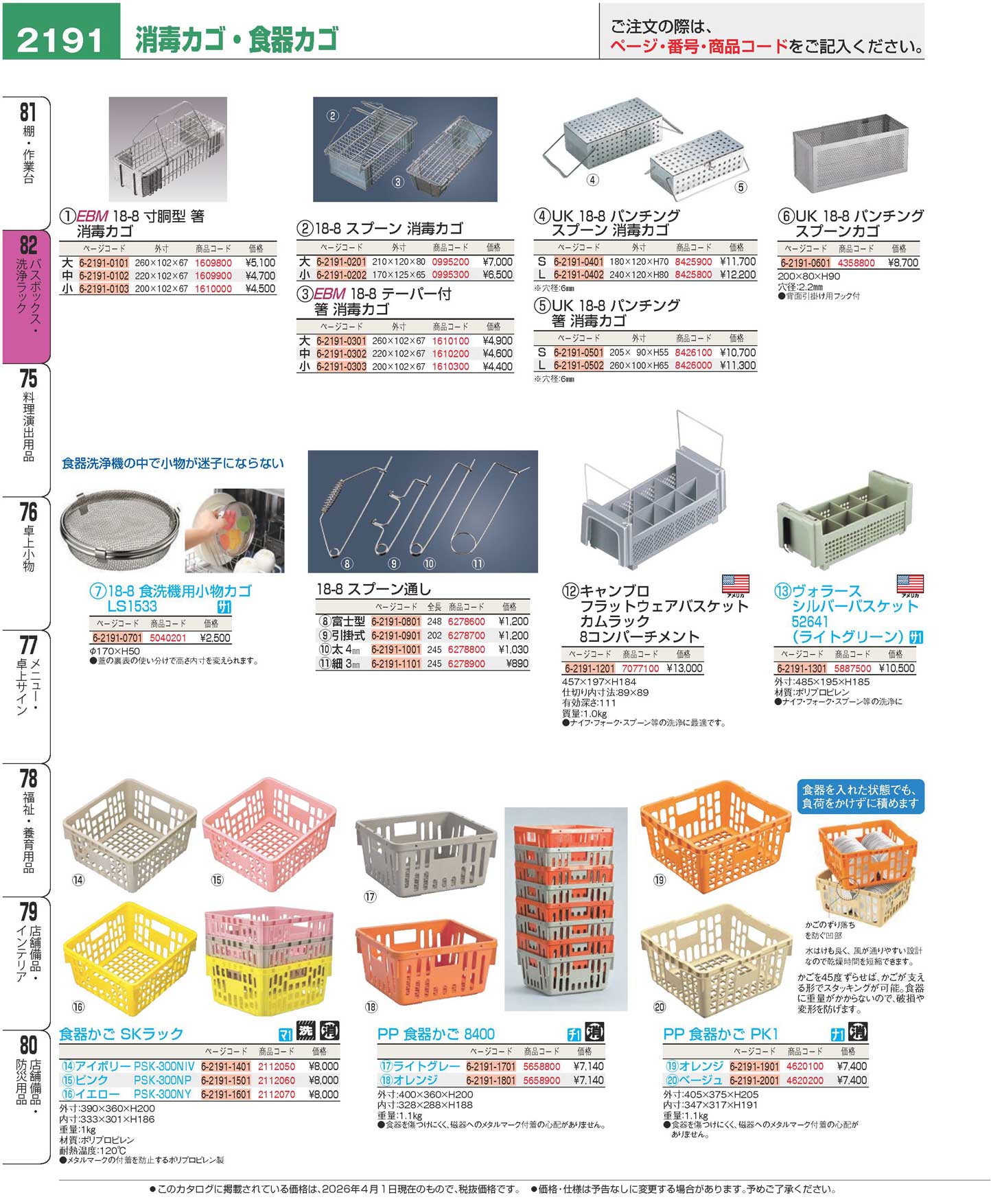 EBM 18-8 寸胴型 箸 消毒カゴ 中(220×102)(90)