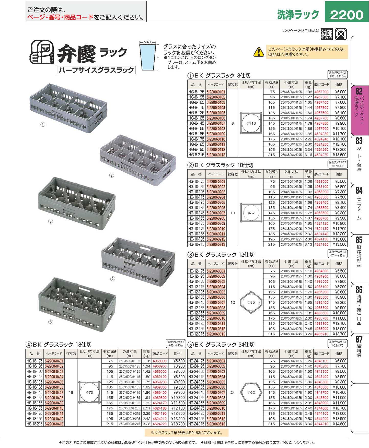 BK ハーフ グラスラック12仕切 HG-12-175(90)