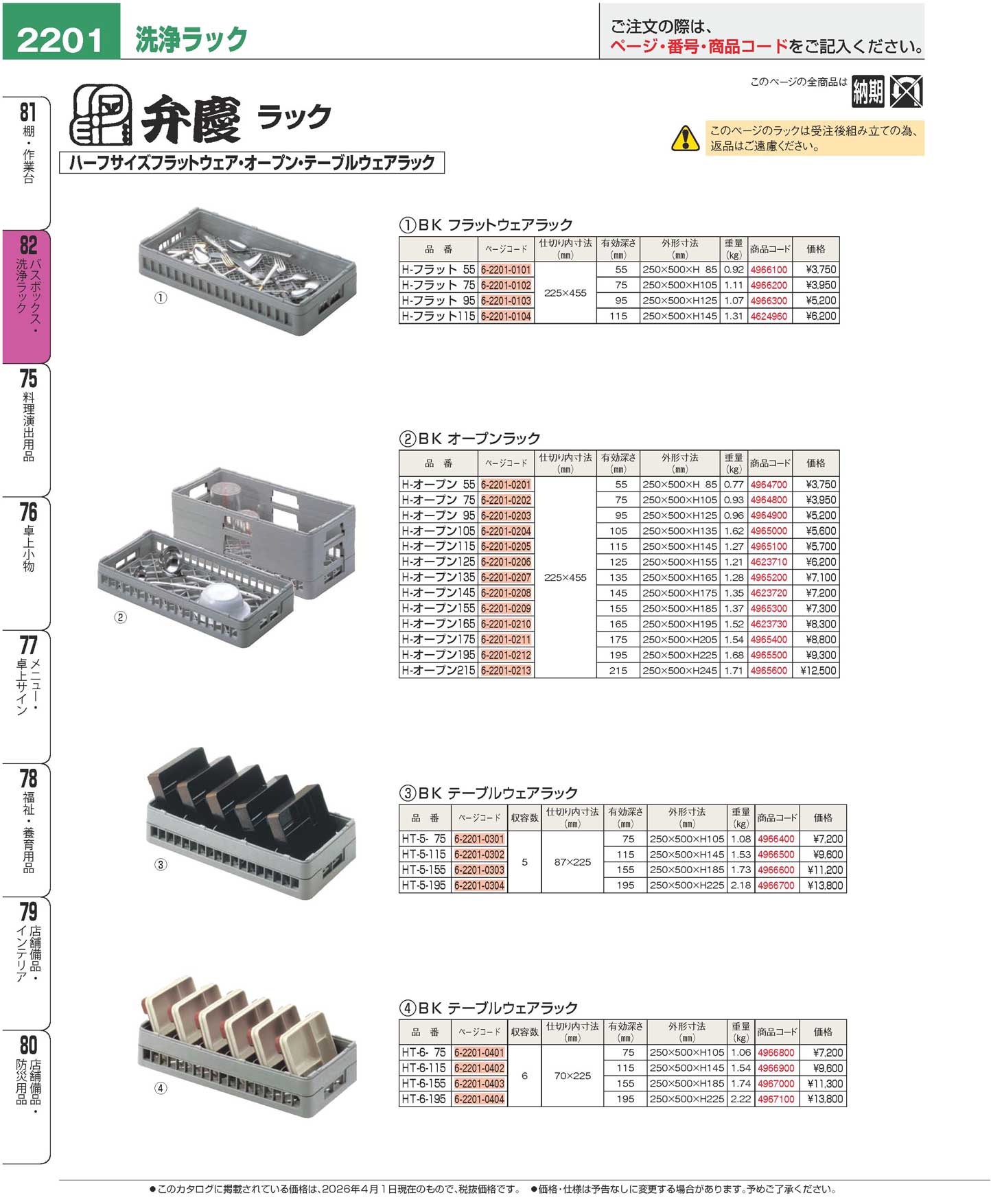 BK ハーフ テーブルウェアラック HT-6-75(90)