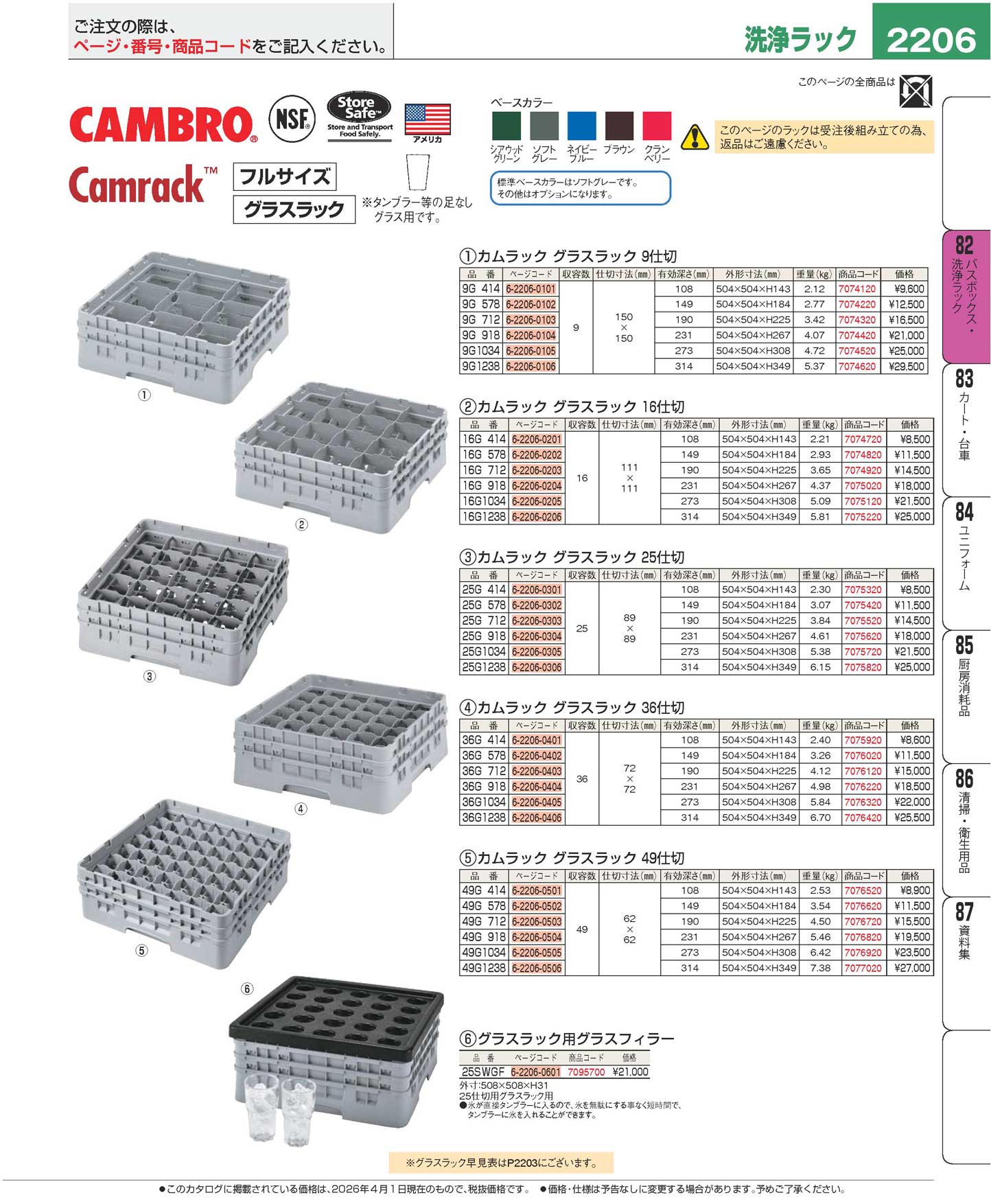 キャンブロ カムラック フル グラス用 25G1238 ソフトグレー(90)
