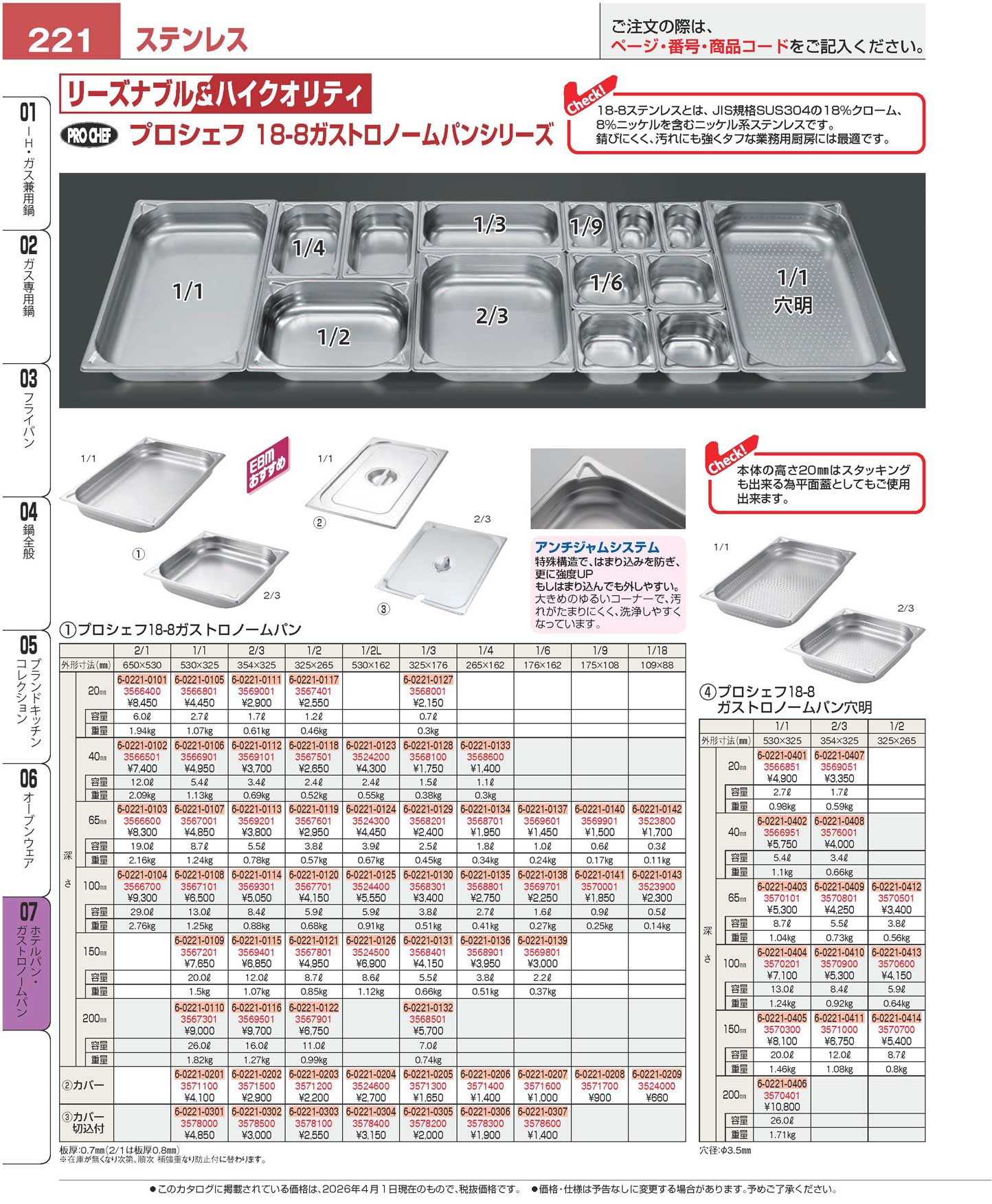 プロシェフ 18-8 穴明GNパン補強重なり防止付 1/1 40mm(90)
