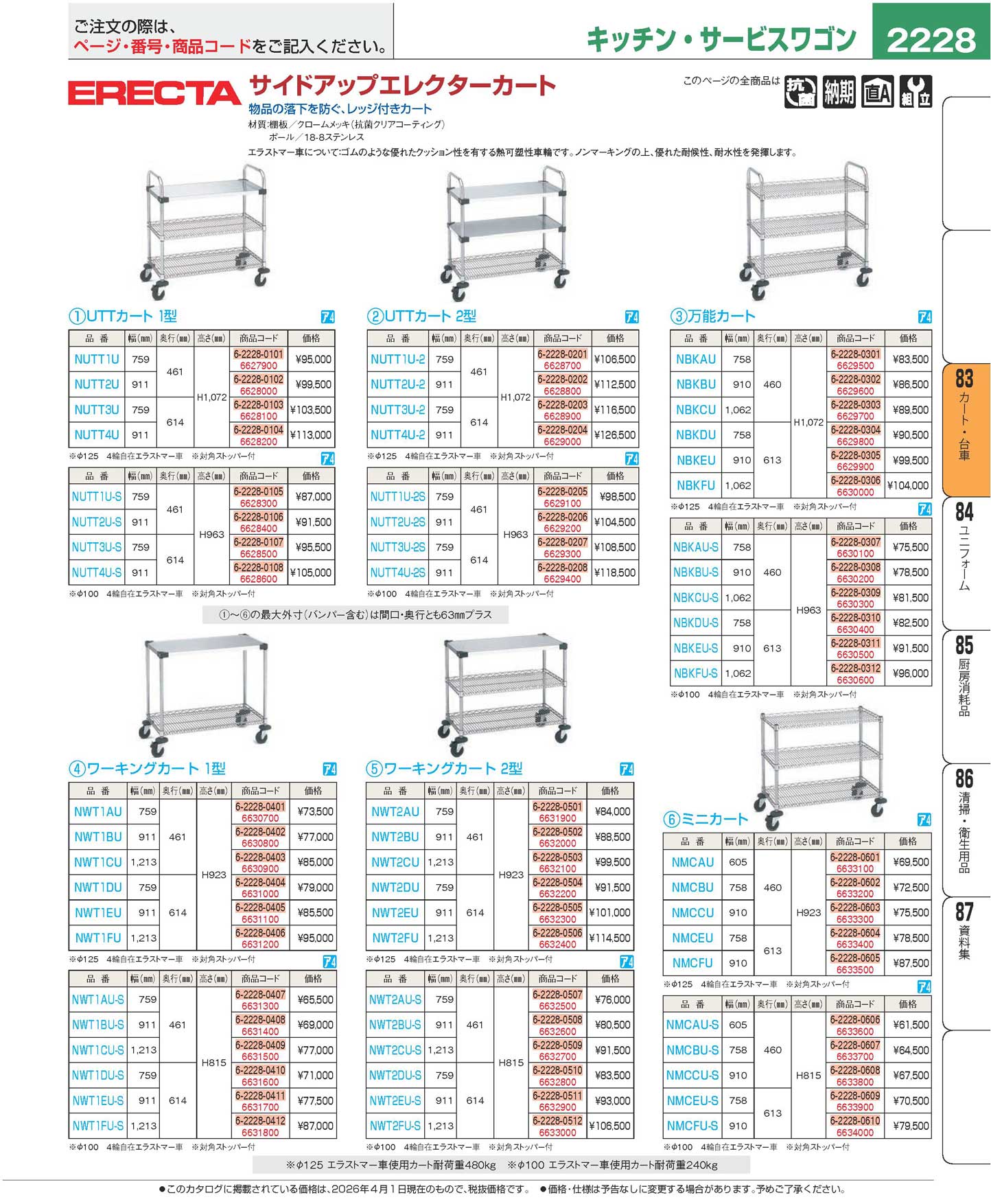 サイドアップエレクターUTTカート 2型 NUTT1U-2S(100)