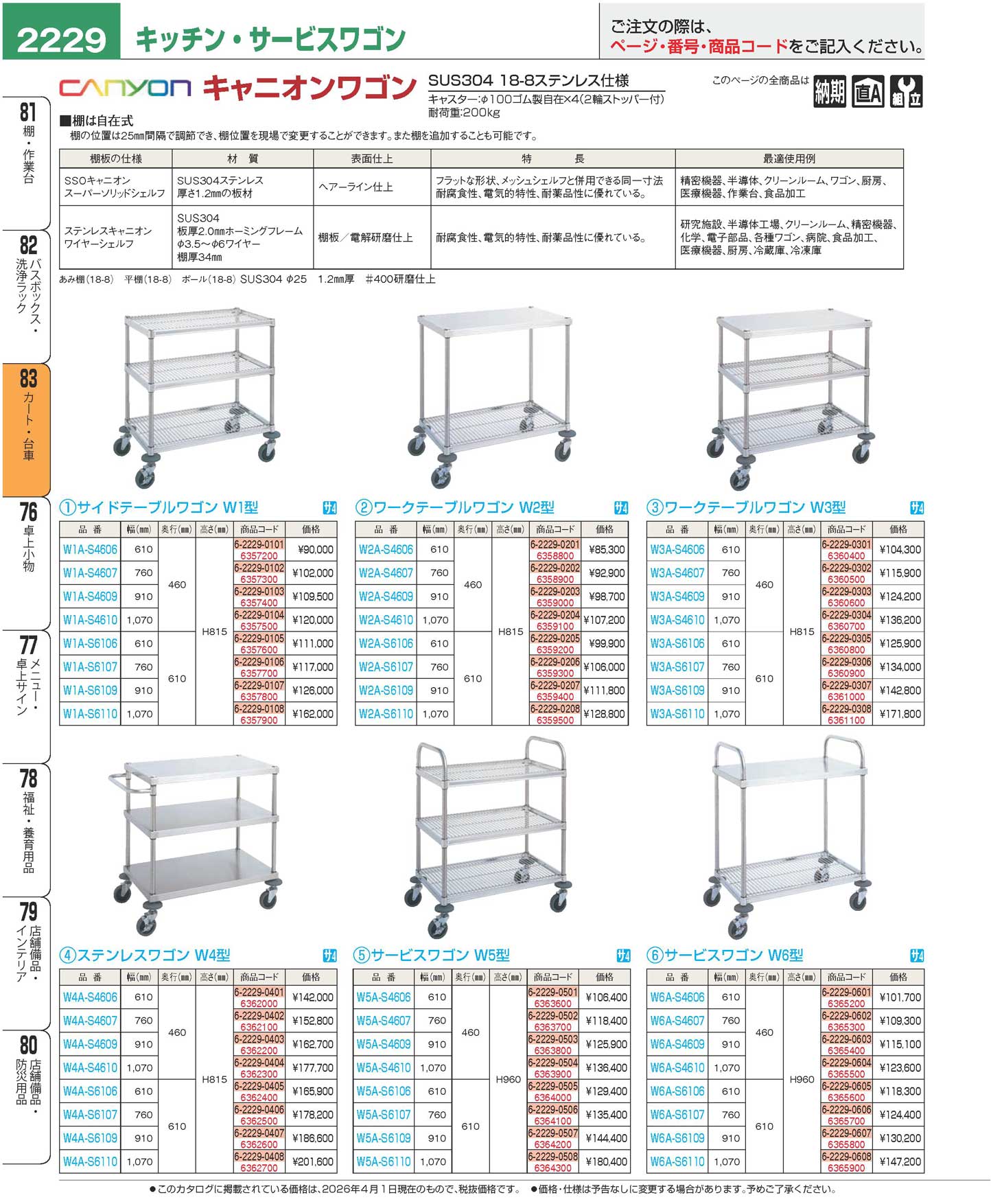 サービスワゴン W6型 18-8 W6A-S4606(120)