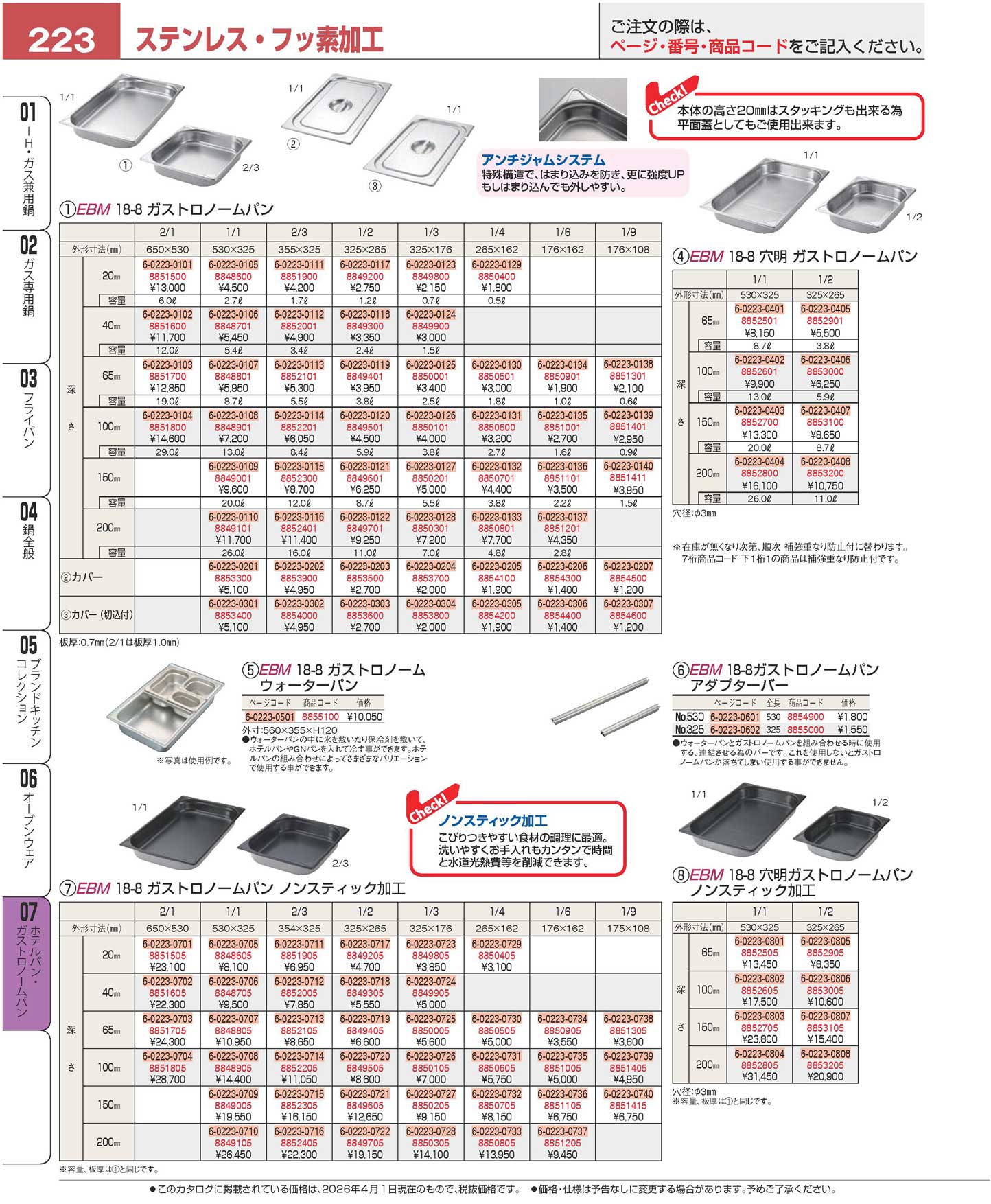 EBM 18-8 穴明ガストロノームパン補強重なり防止付 1/2 65mm(90)