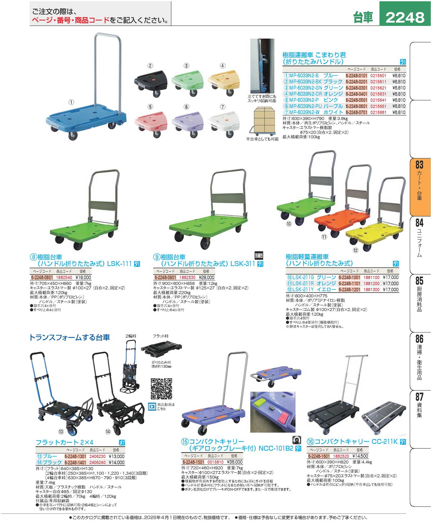 樹脂台車(ハンドル折りたたみ式)LSK-111(130)