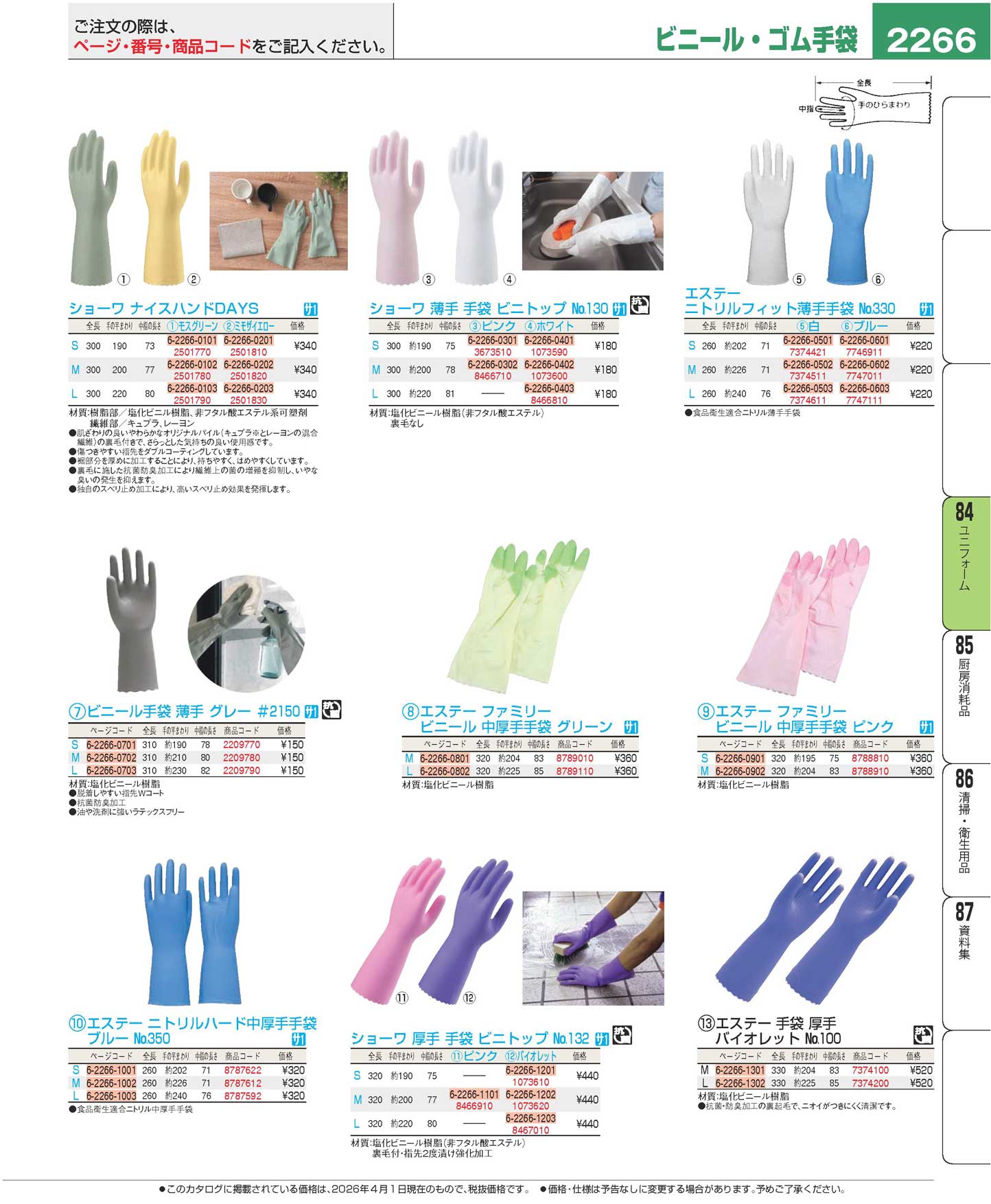 エステー ニトリルフィット薄手手袋 白 No.330 M(120)