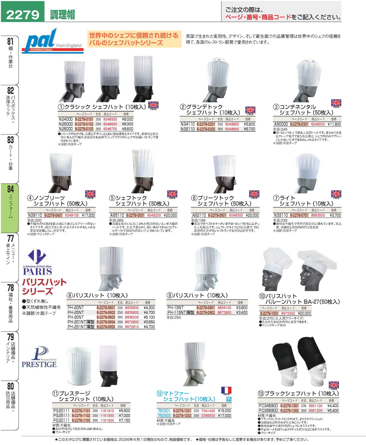 プレステージ シェフハット(10枚入)PS20111(90)