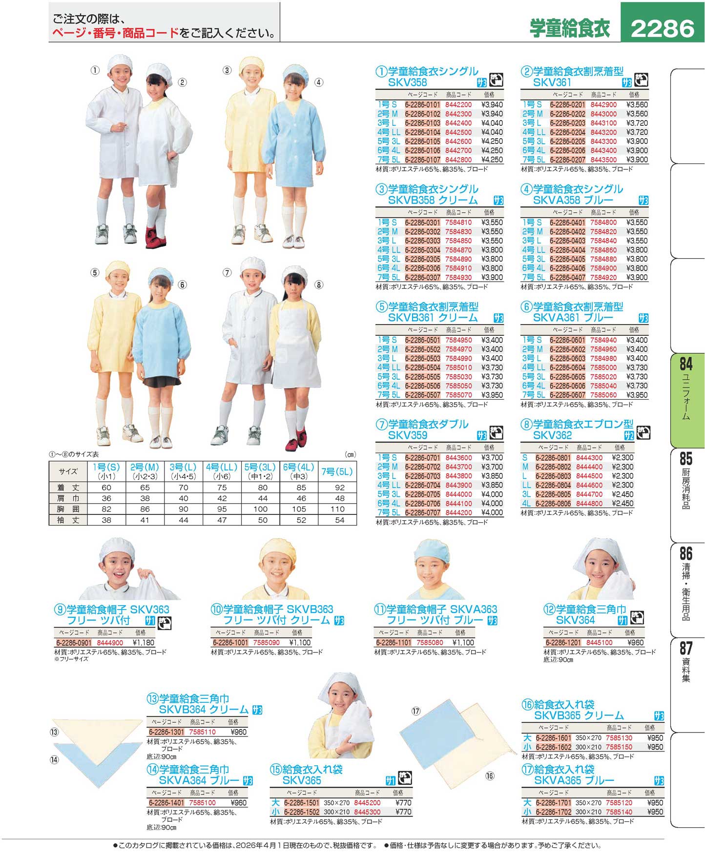 学童給食衣シングル SKV358 1号 S(120)