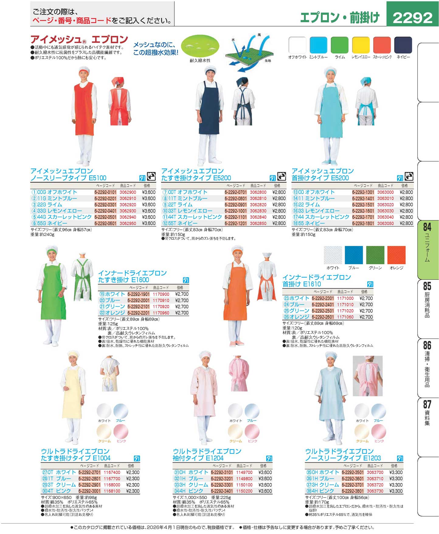 アイメッシュエプロン ノースリーブタイプ E5100-00G オフホワイト(130)