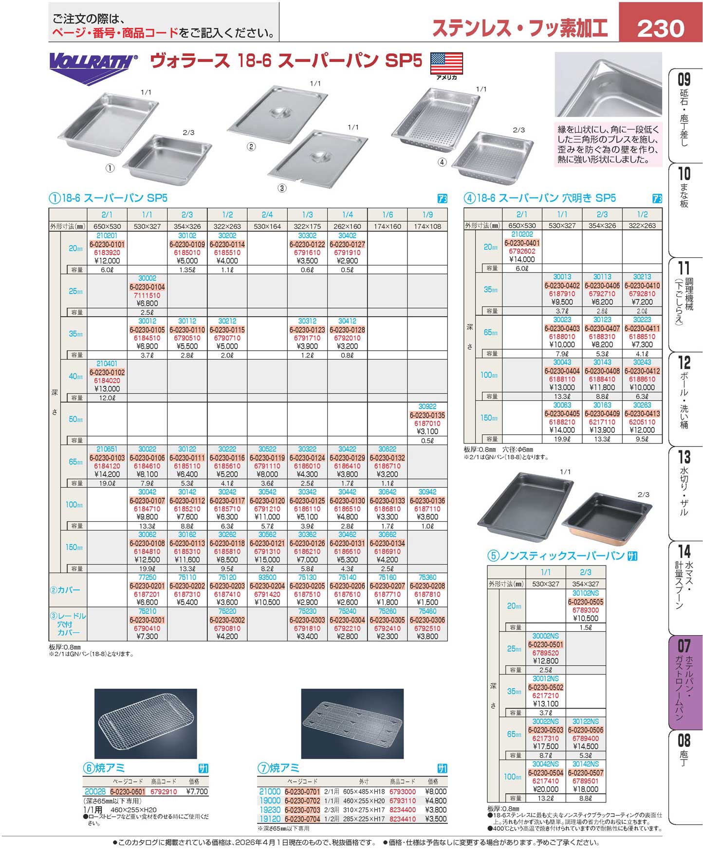 ヴォラース 18-8 ガストロノームパン 穴明 210202 2/1 20mm(100)