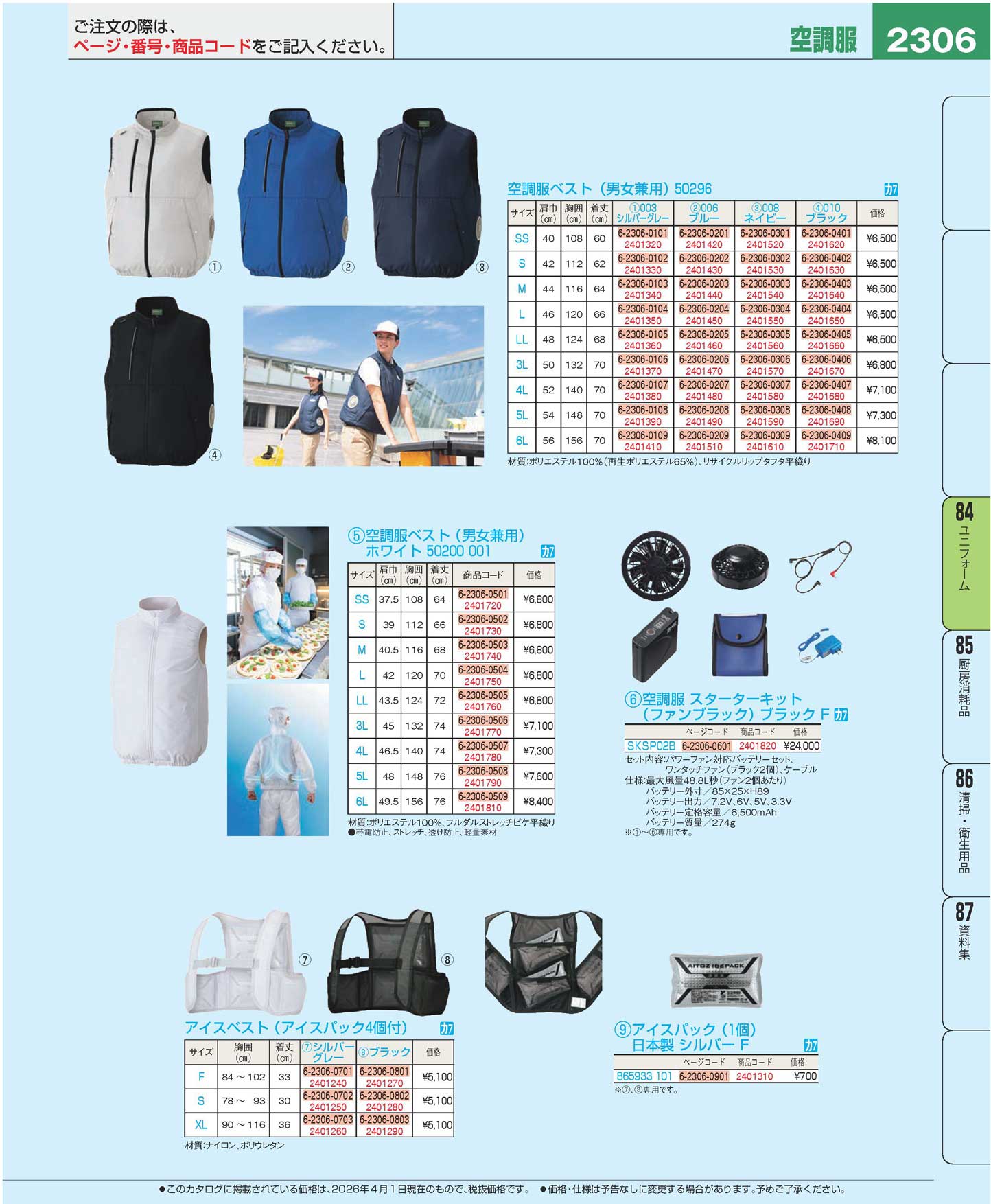 空調服ベスト(男女兼用)ホワイト SS 50200 001(110)(商品番号2401720)