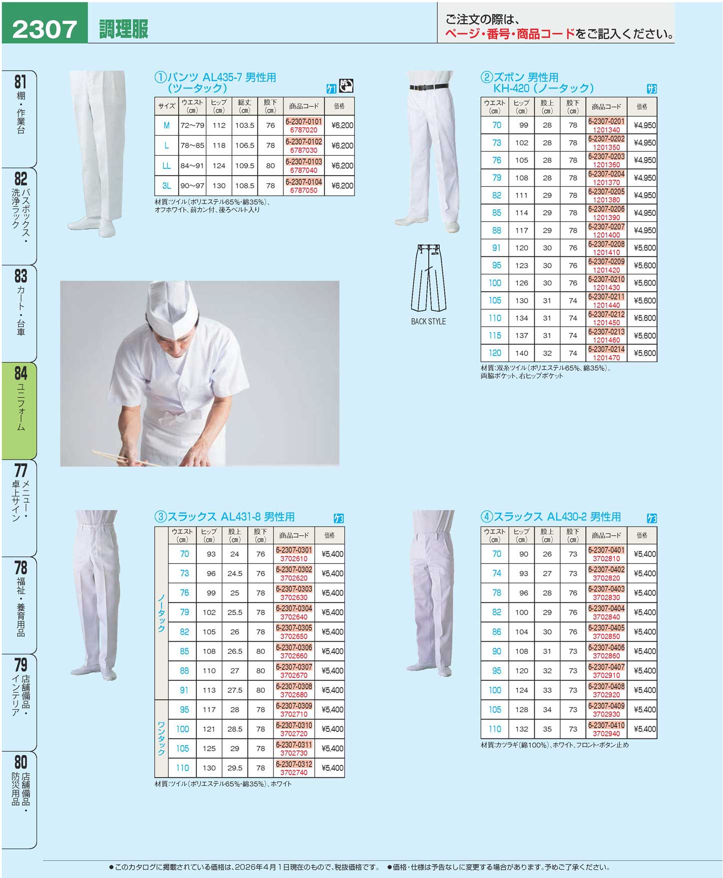 スラックス AL430-2(男性用)100cm(116)