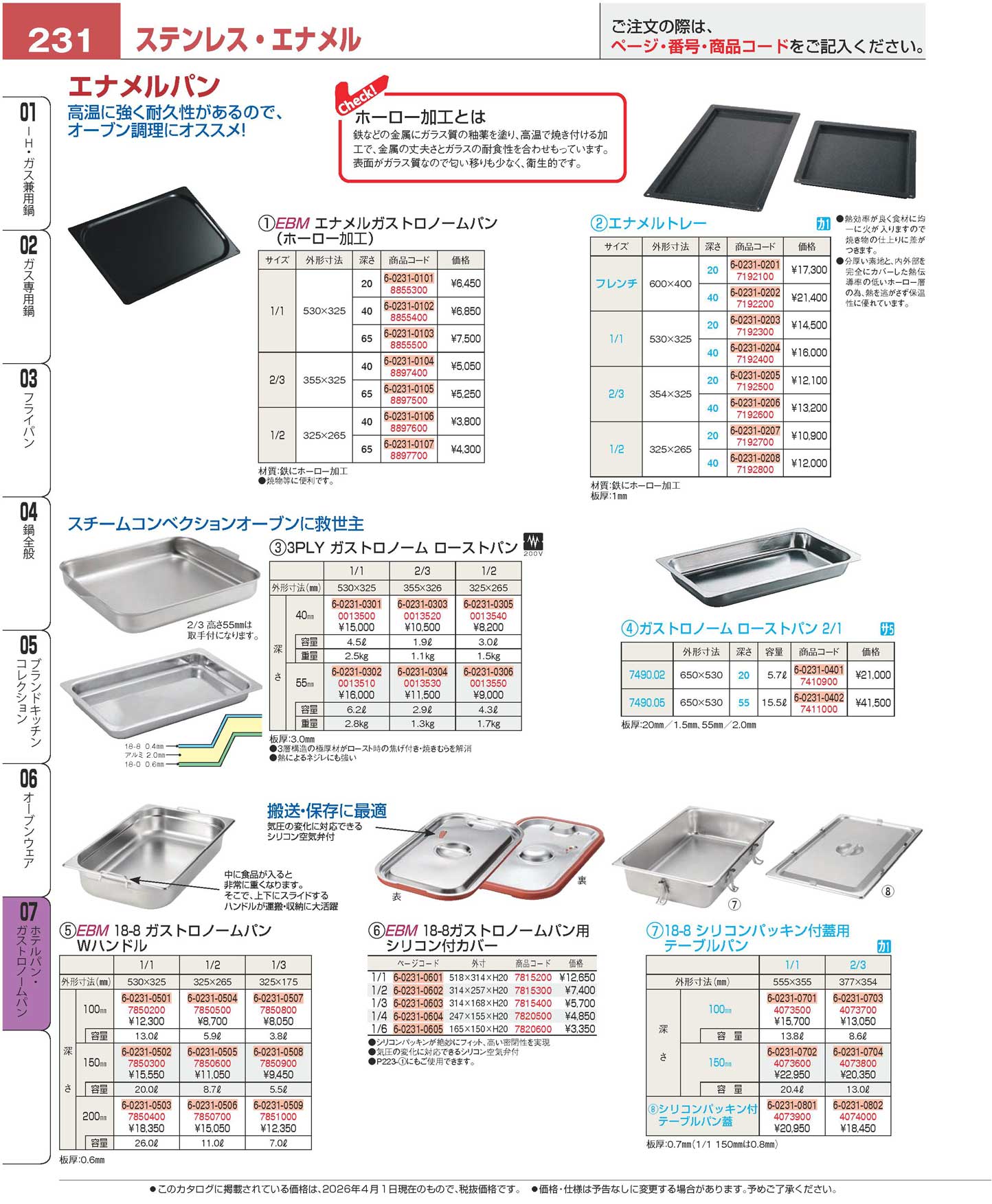 EBM エナメルガストロノームパン 2/3 65mm(90)