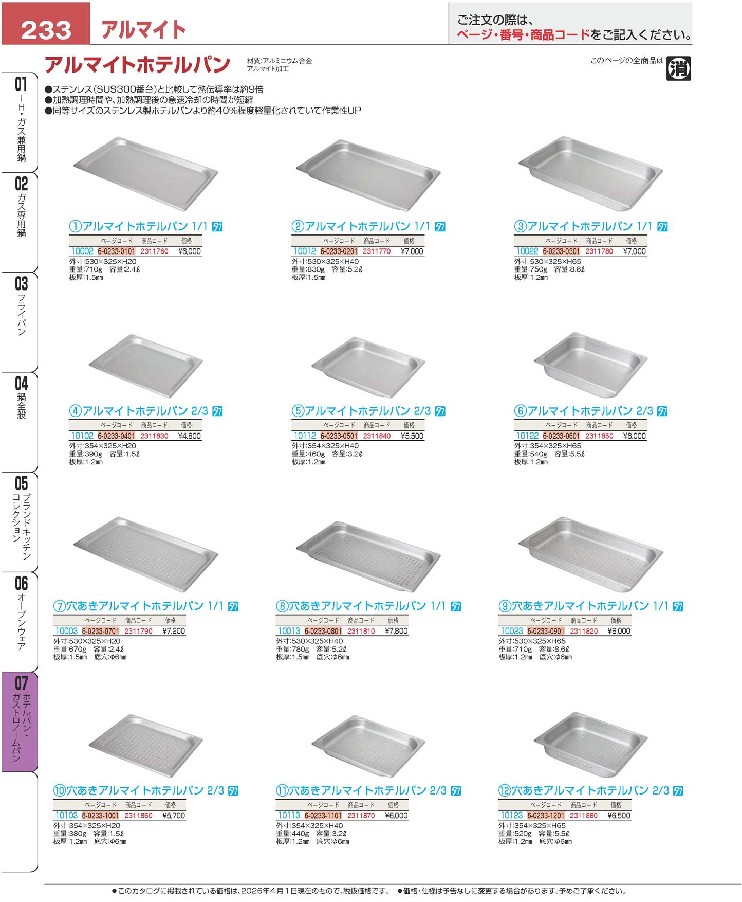 アルマイトホテルパン 2/3 H20 10102(130)