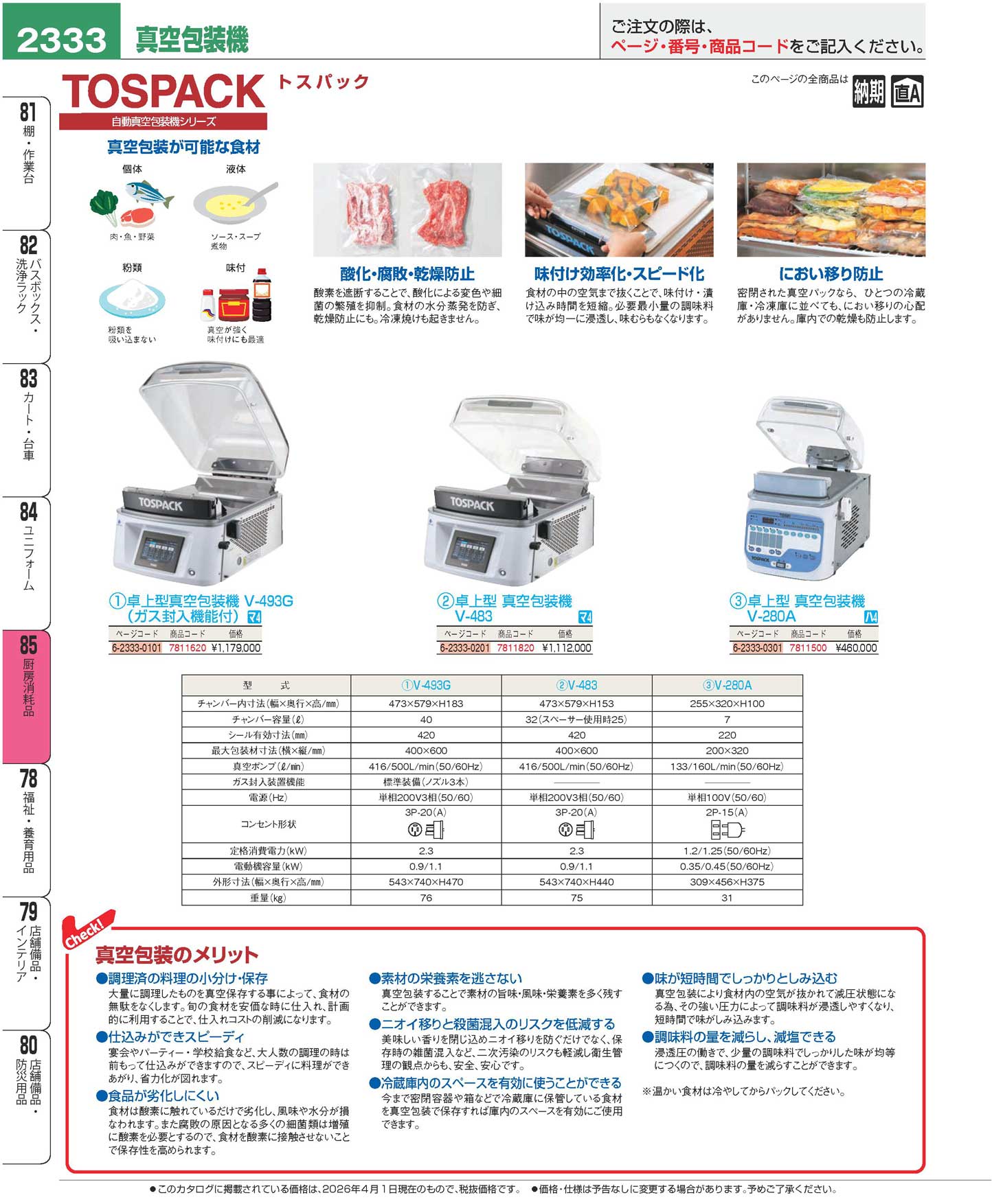 トスパック 卓上型 真空包装機 V-483(160)(商品番号7811820)