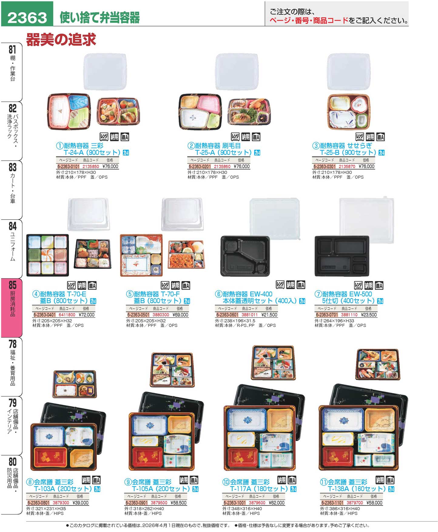 器美の追求 会席膳 蓋三彩 T-105A(200セット)(110)