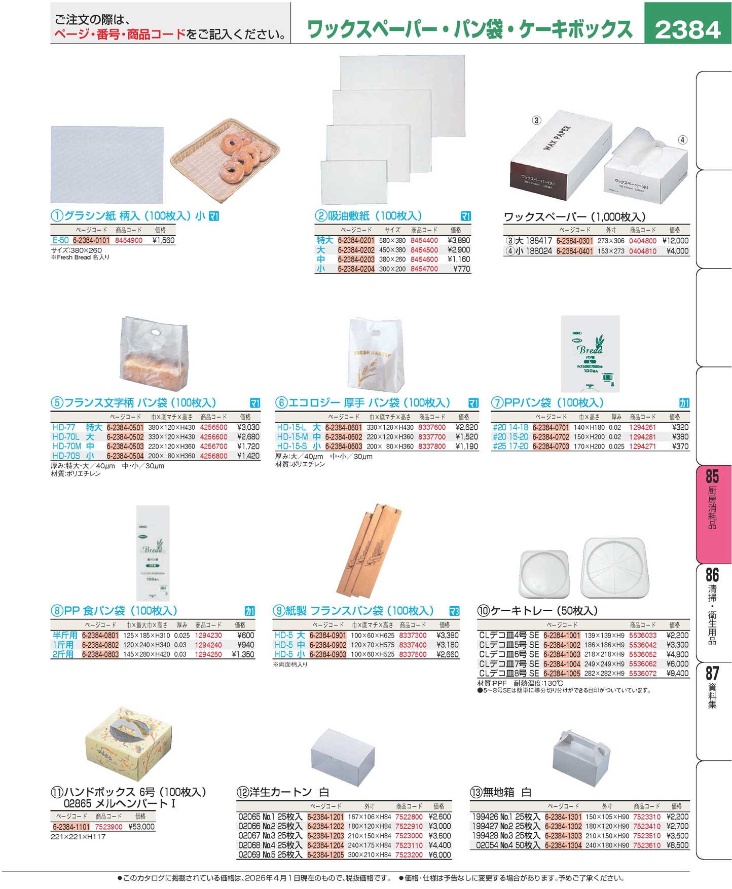 ワックスペーパー(1000枚入)小 188024(90)
