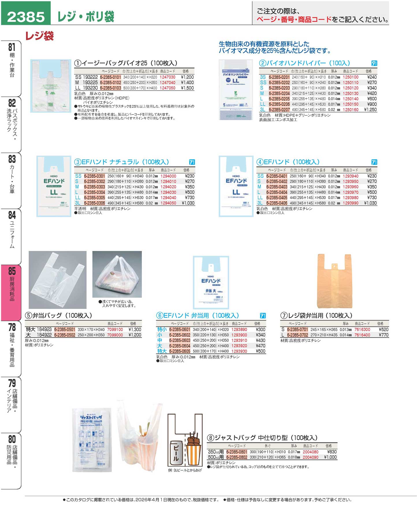 レジ袋弁当用(100枚入)S ベージュ(90)