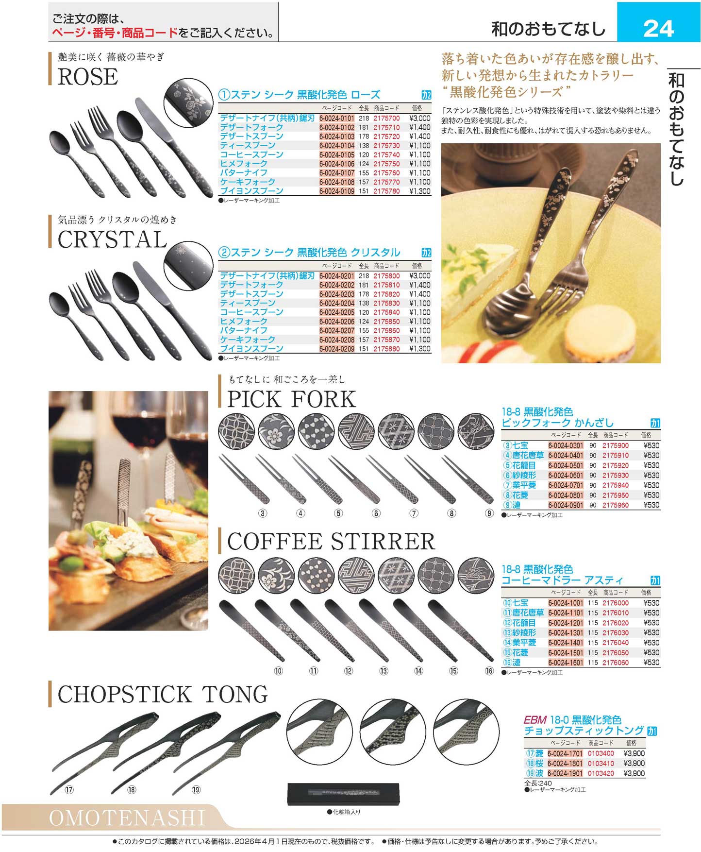 EBM 18-0 黒酸化発色 チョップスティックトング 桜(110)