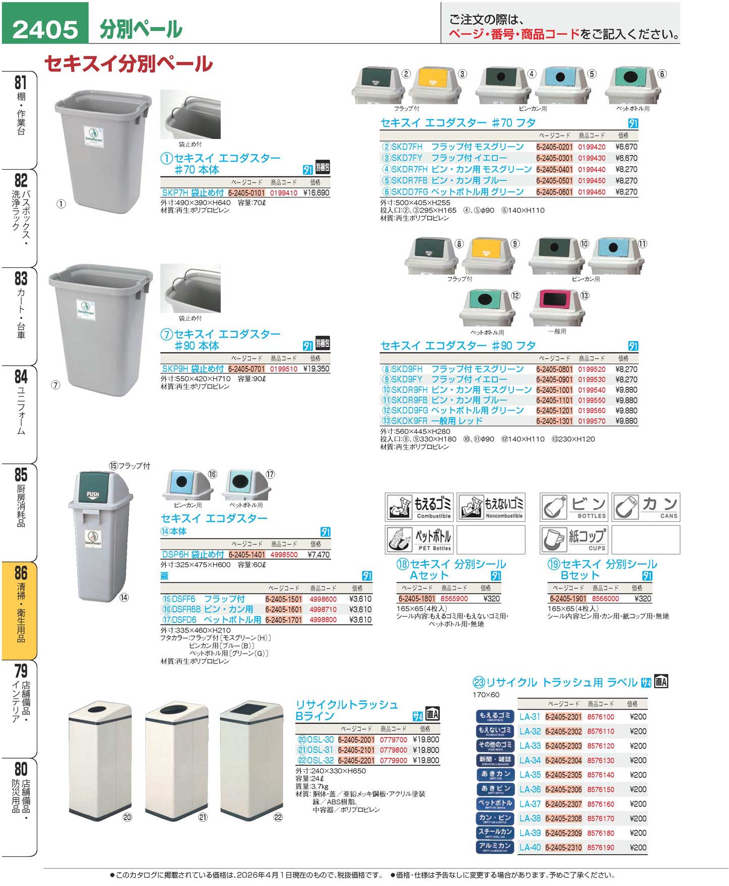 セキスイ 分別シール Bセット(4枚入)(130)