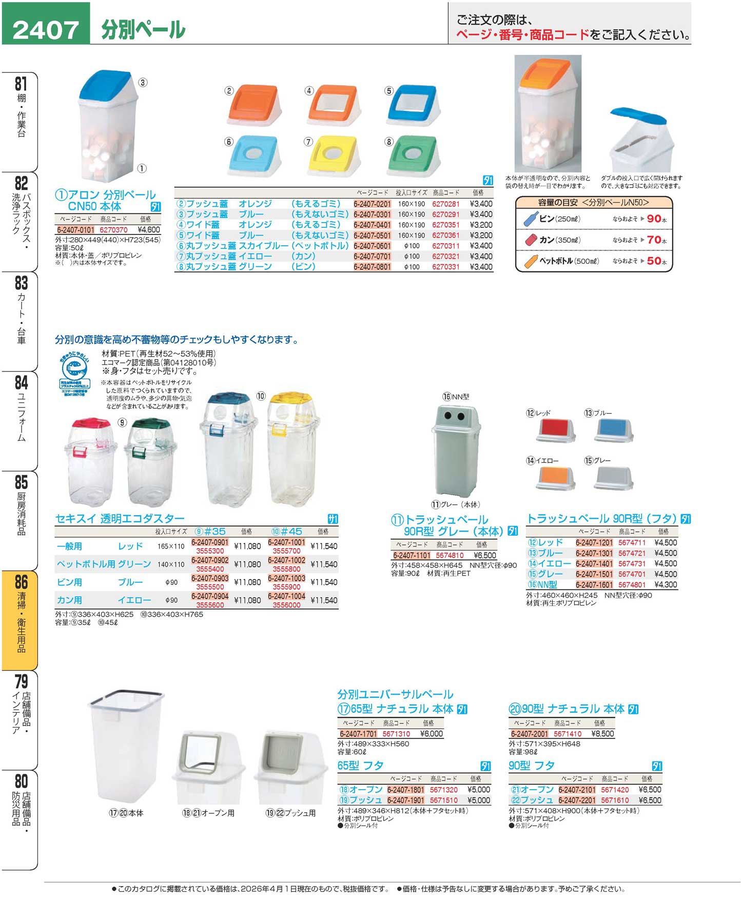 分別ユニバーサルペール 90フタ(プッシュ)ナチュラル(130)